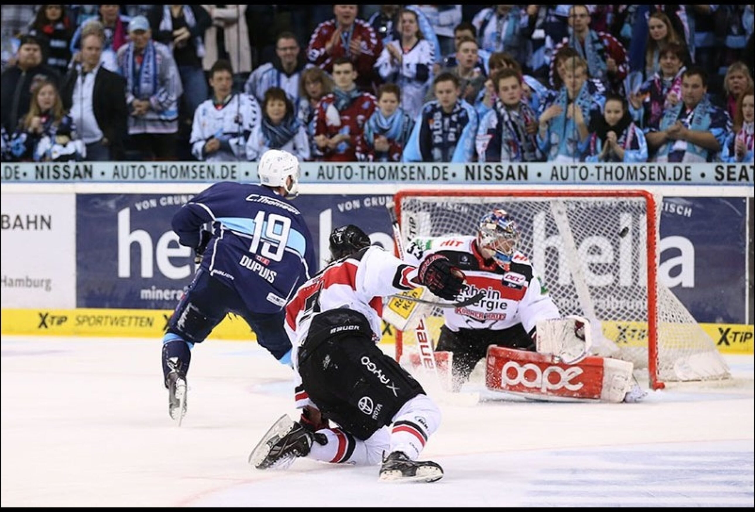 Die Gastgeber starteten mit ordentlich Druck ins Spiel und kamen in der zweiten Minute durch Matt Pettinger in Überzahl und in der fünften Minute durch Morten Madsen zu ersten Möglichkeiten. Dann fand auch der KEC ins Spiel: Mike Iggulden und Jamie Johnson fuhren einen Konter auf das Freezers-Tor, bekamen den Puck aber nicht an Keeper Sebastian Caron vorbei. Die Haie auch in der Folge mit guten Einschusschancen: John Tripp (10.) mit einem verdeckten Schuss, wieder die Reihe um Iggulden, Johnson und Maxime Sauvé (12.) und Torsten Ankert mit einem Schlagschuss (13.) konnten den Schlussmann der Freezers aber erneut nicht bezwingen. Auch mit einem Mann mehr auf dem Eis zeigten sich die Haie deutlich besser organisiert als zuletzt. Erneut Johnson (14.) und Alex Sulzer (14.) sorgten mit ihren Versuchen für Gefahr – einzig, das Tor wollte nicht fallen. Kurz vor der ersten Pause hatte dann Hamburgs Kevin Clark die Führung auf der Kelle, doch Haie-Goalie Danny aus den Birken parierte mit einem sehenswerten Hechtsprung. Keine Treffer in Drittel eins.