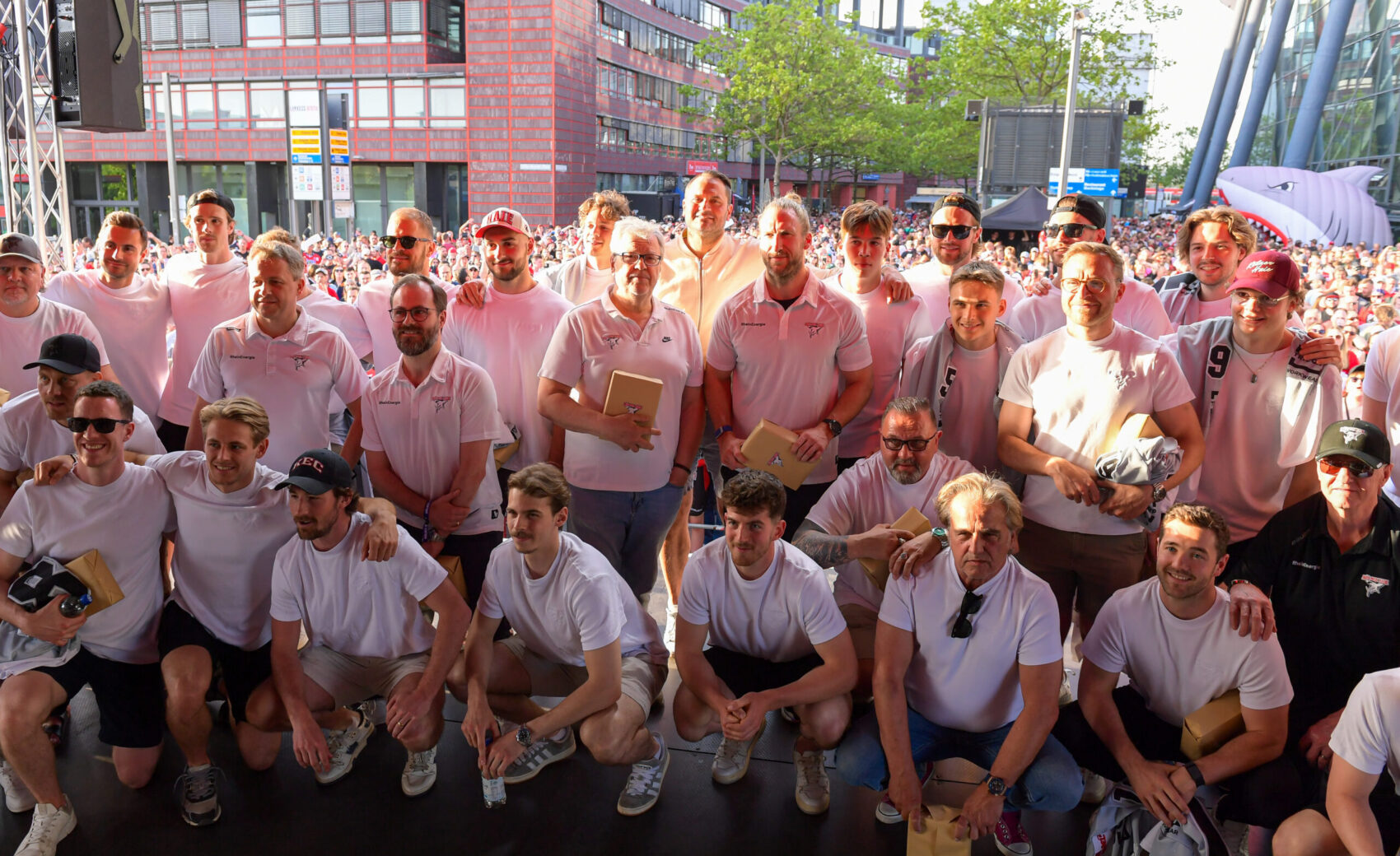 Haie-Fans, das war eine großartige Saisonabschlussfeier, die wir zusammen mit euch erleben durften. Bei bestem Wetter, einem bunten Bühnenprogramm und kurzweiligen „Talks“ auf der großen Bühne entließen wir unsere Vizemeister-Mannschaft am Freitagabend in die wohlverdiente Sommerpause. Wir lassen den besonderen Tag mit euch zusammen vor allen Dingen in Form von Bildern und einem Video noch einmal Revue passieren.