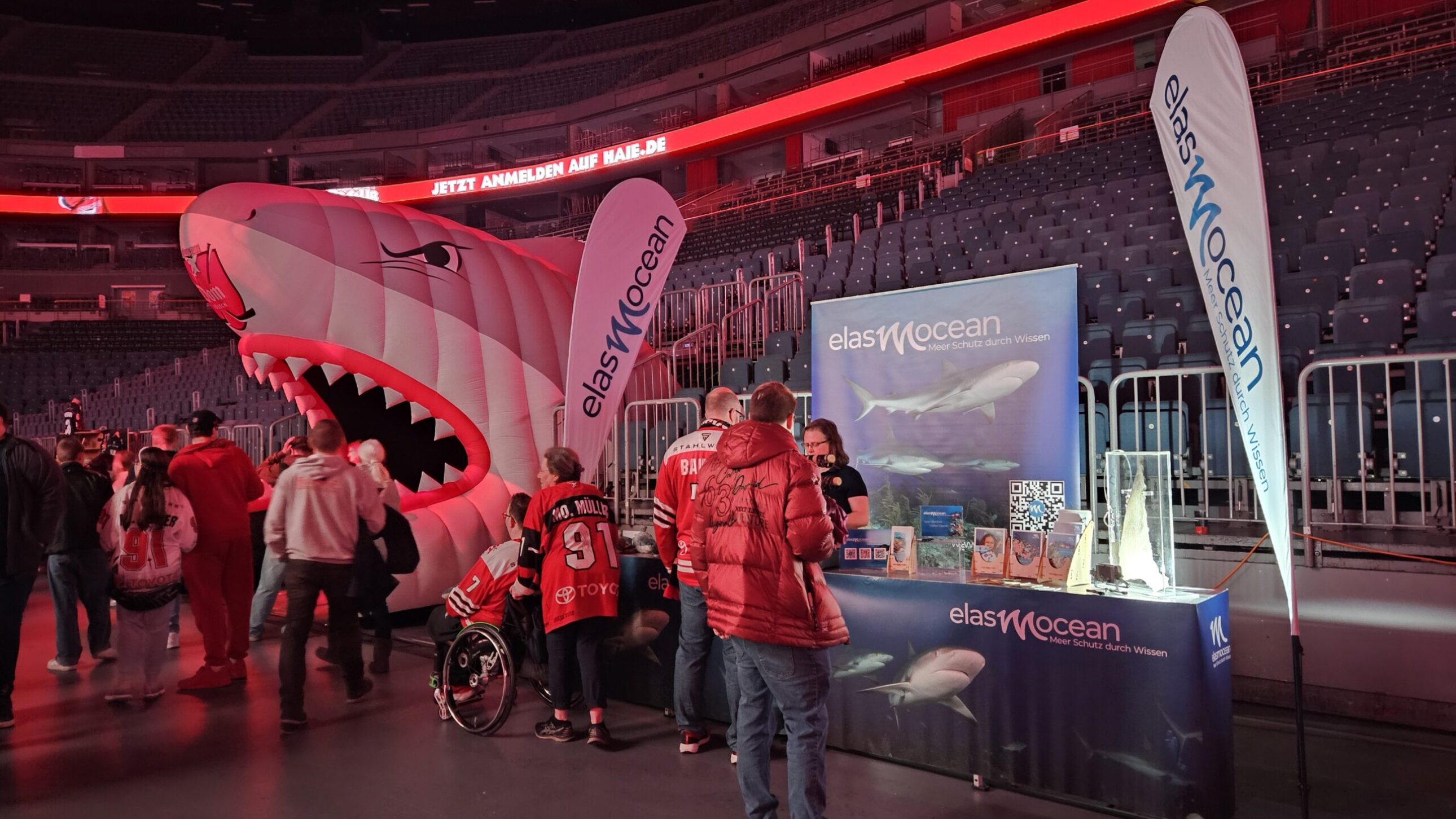 Das Team von ElasmOcean e.V. hat in der Vergangenheit in der LANXESS arena bei jedem Spiel und auf ausgewählten Veranstaltungen der Kölner Haie Menschen über die Gefährdung dieser Spezies und damit auch des Ozeans aufgeklärt. Zu den Botschaftern der Kölner Haie gehörte in der jüngeren Vergangenheit u.a. auch KEC-Kapitän Moritz Müller, der bei einigen Meerestagen von ElasmOcean e.V. zusammen mit dem Haie-Kids Club mitgewirkt hat.