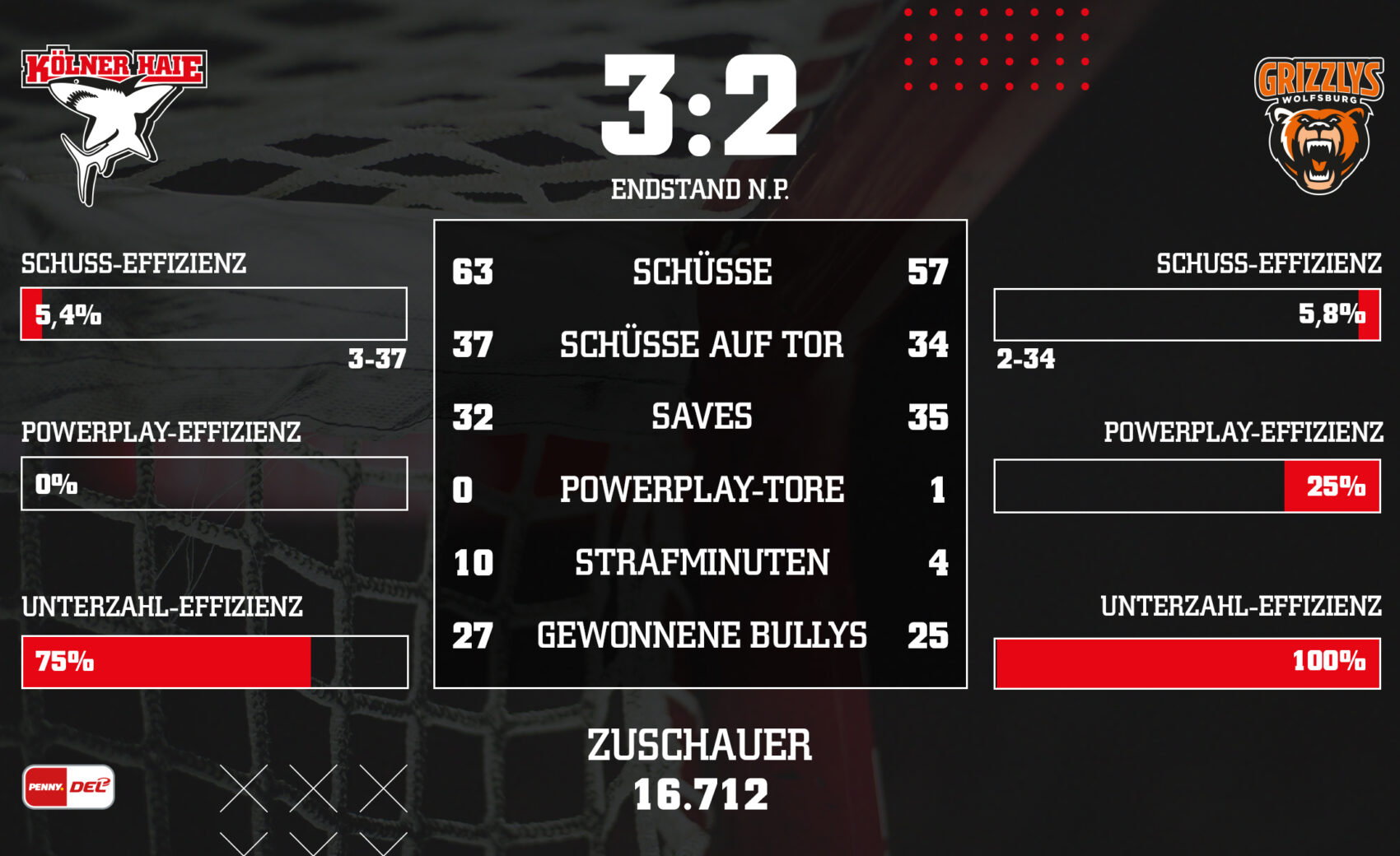 Im einem über die volle Spielzeit unterhaltsamen Spiel verpasste es unsere Mannschaft in den anschlieenden Minuten, sich in gute Abschlusspositionen zu bringen und so für mehr Gefahr vor Grizzlys-Schlussmann Weitzmann zu sorgen. Juhani Tyrväinen prüfte den Torhüter aus vollem Lauf, scheiterte aber am Ex-Hai. Auf der Gegenseite war Julius Hudacek im KEC-Kasten zum Drittelende mehrfach gefordert, konnte dem Druck zunächst auch standhalten. 25,6 Sekunden vor der ersten Drittelpause mussten wir dann doch den ersten Gegentreffer hinnehmen. Archibald traf für die Gäste im Powerplay.