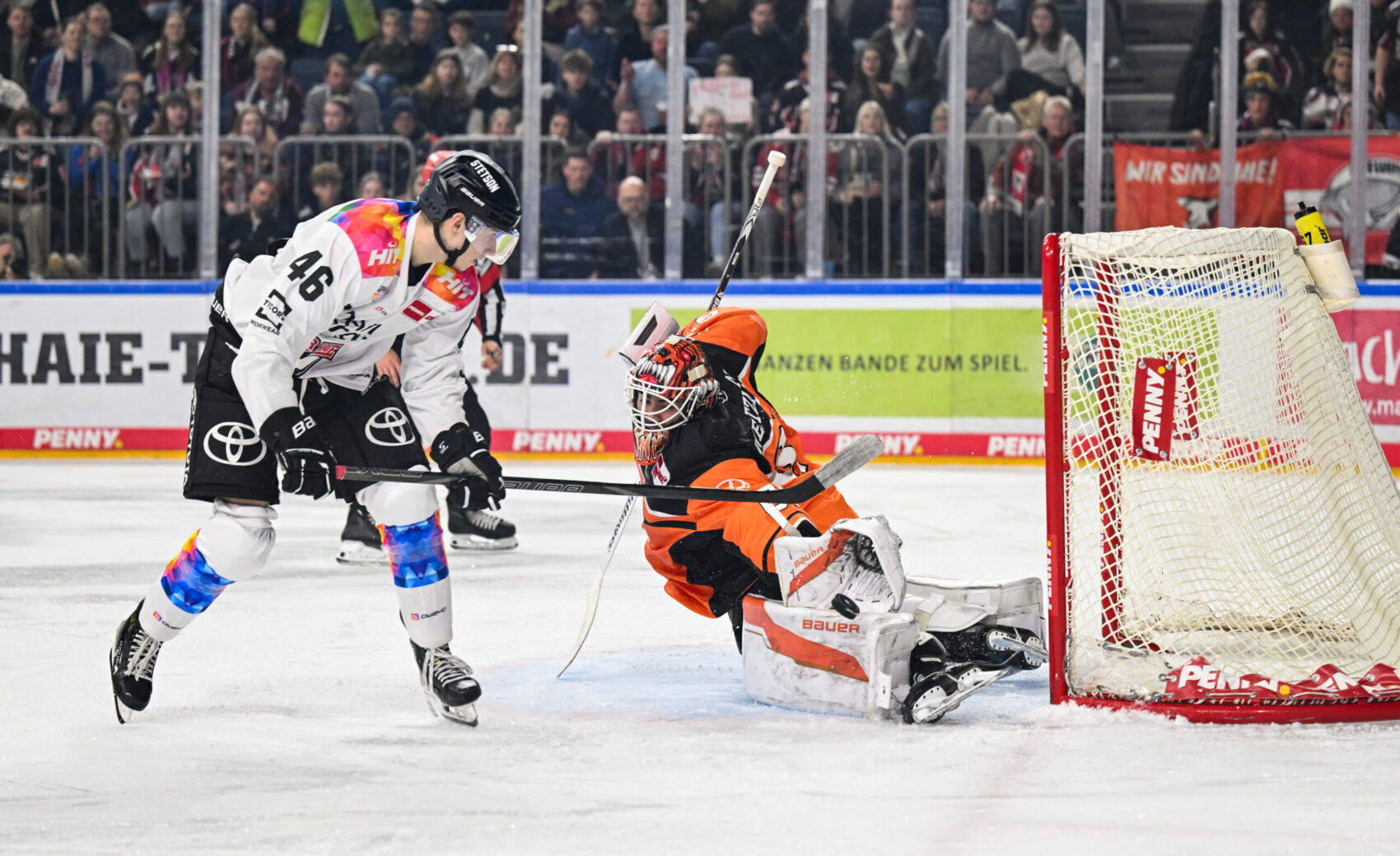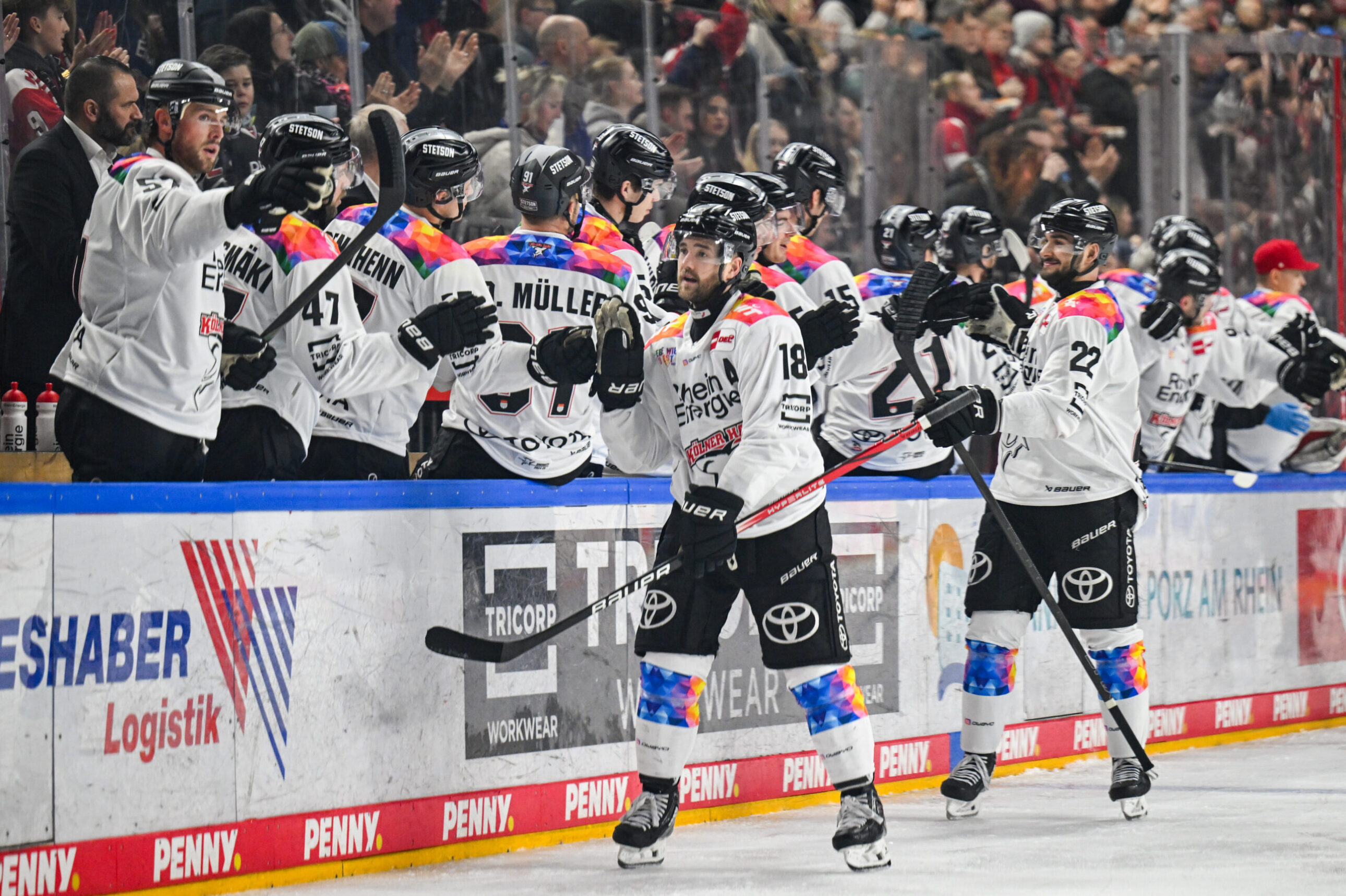 Erfolgreicher Abschluss unserer Heimserie. Wir gewinnen unser Heimspiel am Diversity Day gegen die Grizzlys Wolfsburg mit 3:2 nach Penaltyschieen. Nach zwischenzeitlichem 1:2-Rückstand gleichen wir im Schlussdrittel die Partie aus, ehe Alexandre Grenier im Penaltyschieen zum Matchwinner avanciert. Wir haben den Spielbericht.