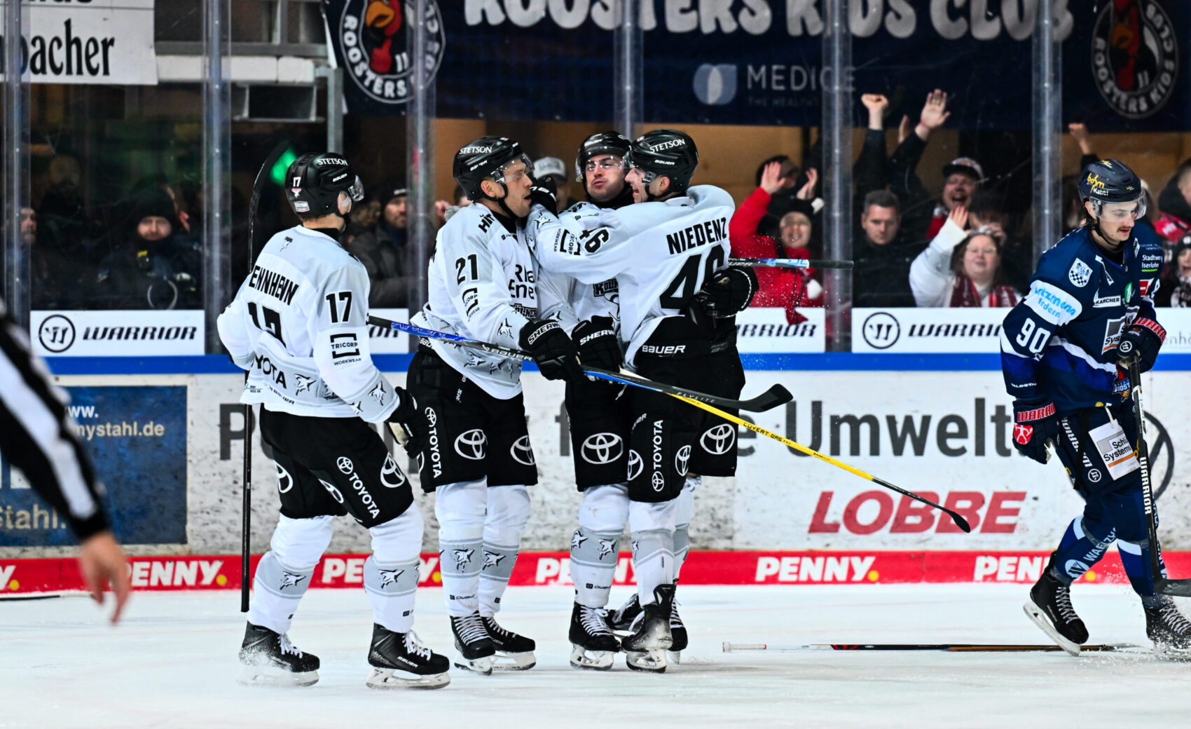 1:0 Eric Cornel (Überzahl/Boland, Napravnik) 9. Minute; 1:1 Moritz Müller (Kammerer, Tyrväinen) 10. Minute; 2:1 Colin Ugbekile (Überzahl/Thomas, Napravnik) 23. Minute; 2:2 Jan Luca Sennhenn (Kemiläinen, Tuomie) 27. Minute; 2:3 Ryan MacInnis (Tuomie) 33. Minute; 2:4 Veli-Matti Vittasmäki 35. Minute; 2:5 Louis-Marc Aubry (Bokk, Storm) 37. Minute; 3:5 Eric Cornel (Fischbuch, Camara) 40. Minute; 3:6 Maximilian Kammerer (Russell, Schnarr) 42. Minute; 3:7 Maximilan Kammerer (Niedenz) 46. Minute; 4:7 Anthony Camara (Fischbuch, Cornel) 60. Minute