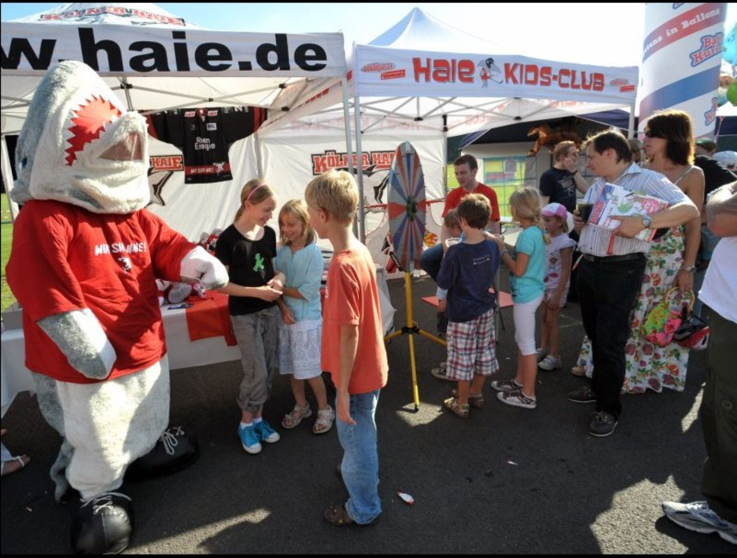 Am Sonntag ist „verkaufsoffen“ in Köln. Haie-Maskottchen Sharky nutzt die Gelegenheit, um in die Innenstadt zu fahren. Der KEC ist als Gast beim Stand der Wiener Steffie – genau vor der Galeria Kaufhof (Hohe Straße/Schildergasse). Am Stand des Partylokals gibt es Cocktails, Programm für Kinder, Verlosungen u.v.m.. Sharky bietet mit fleißigen Helfern u.a. Haie-Tickets an. Also, wer Sharky live erleben will: Am Sonntag in die Kölner City – von 13- 18 Uhr!