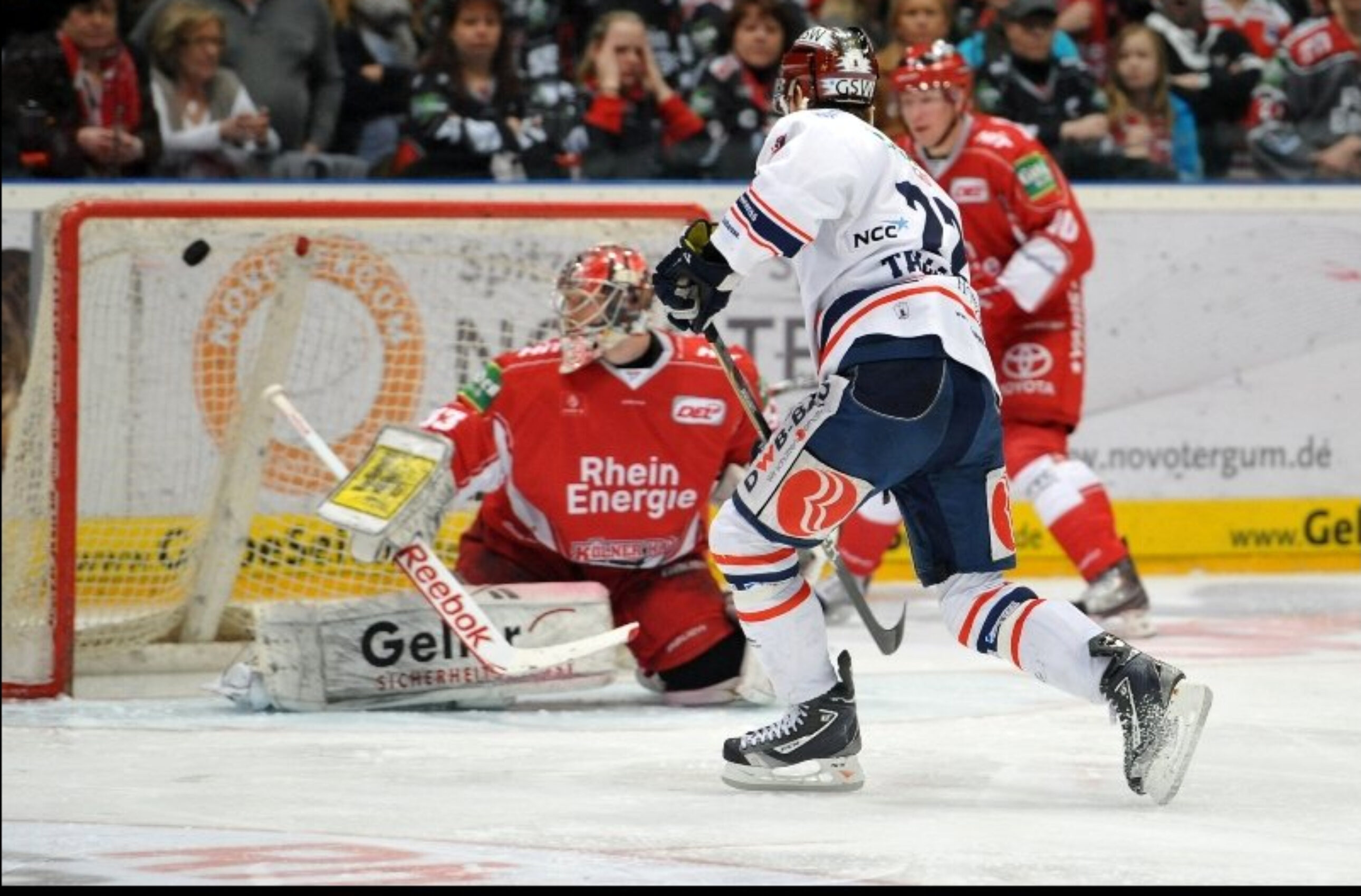 Köln lie jedoch nicht locker. Getreu dem Motto „Haie geben niemals auf!“ glaubte der KEC weiter an seine Chance. Das änderte sich auch nicht, als die Haie plötzlich mit zwei Mann weniger auf dem Eis standen. Da Richie Regehr aber nur den Pfosten traf, blieb es spannend (50.). In den Schlussminuten wurde es turbulent: Bei 2´44 fuhr Danny aus den Birken zugunsten eines weiteren Feldspielers vom Eis. Gepaart mit weiteren Hinausstellungen gegen die Gäste wurde daraus binnen weniger Augenblicke eine 6-gegen-3-Überzahl. Philip Gogulla traf zwei Mal das Gestänge, Berlin verpasste das empty-net-Tor durch Florian Busch und schlielich sicherte Zepp den Sieg des Meisters.