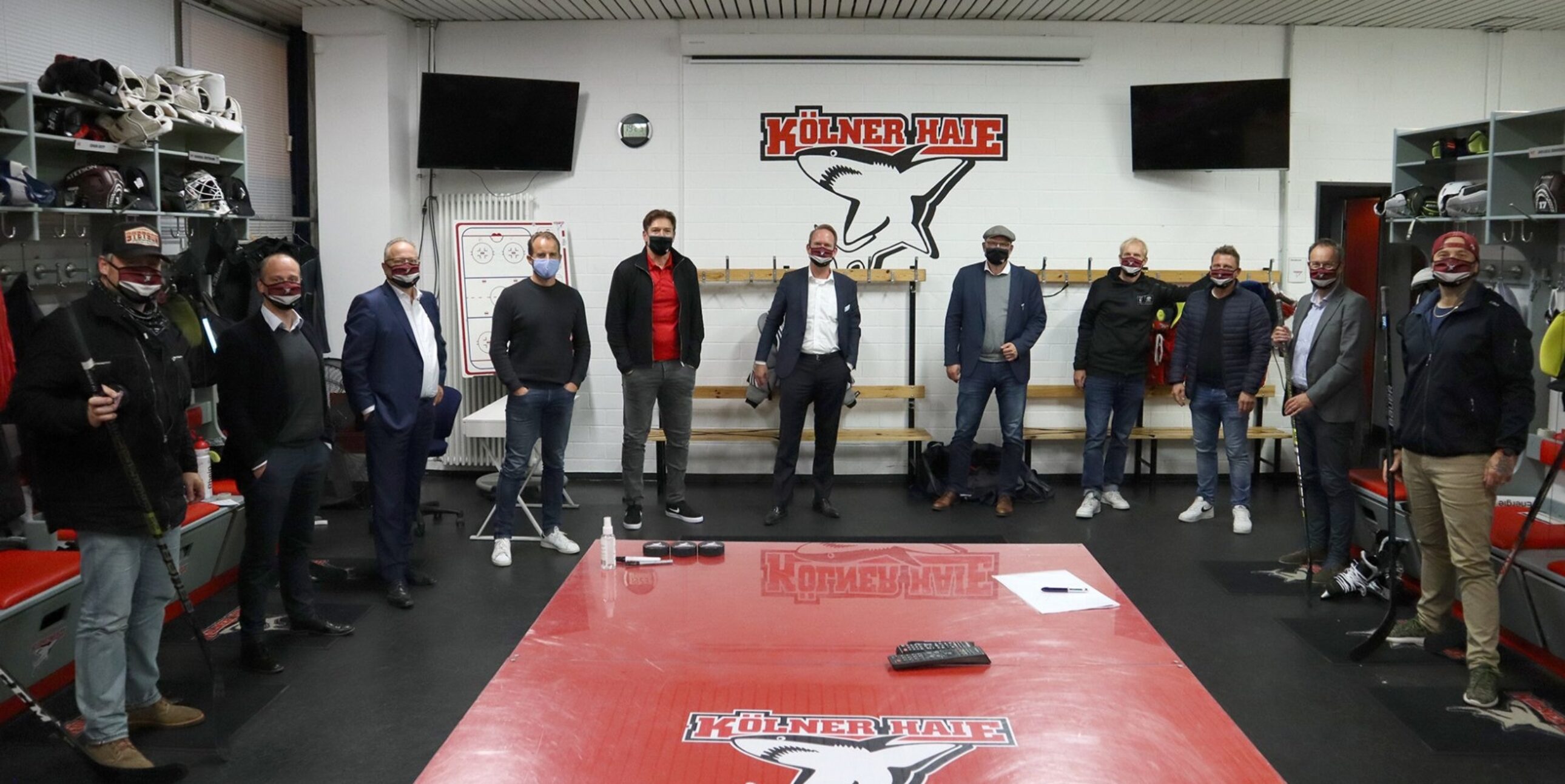 Ein besonderer Ort für einen ganz besonderen Termin: Die Profi-Kabine der Haie diente als Schauplatz des Treffens unserer Top-Sponsoren mit Haie-Chefcoach Uwe Krupp und Geschäftsführer Philipp Walter. Natürlich fand die Veranstaltung in diesen besonderen Zeiten unter strenger Einhaltung der geltenden Corona-Schutzverordnung statt.