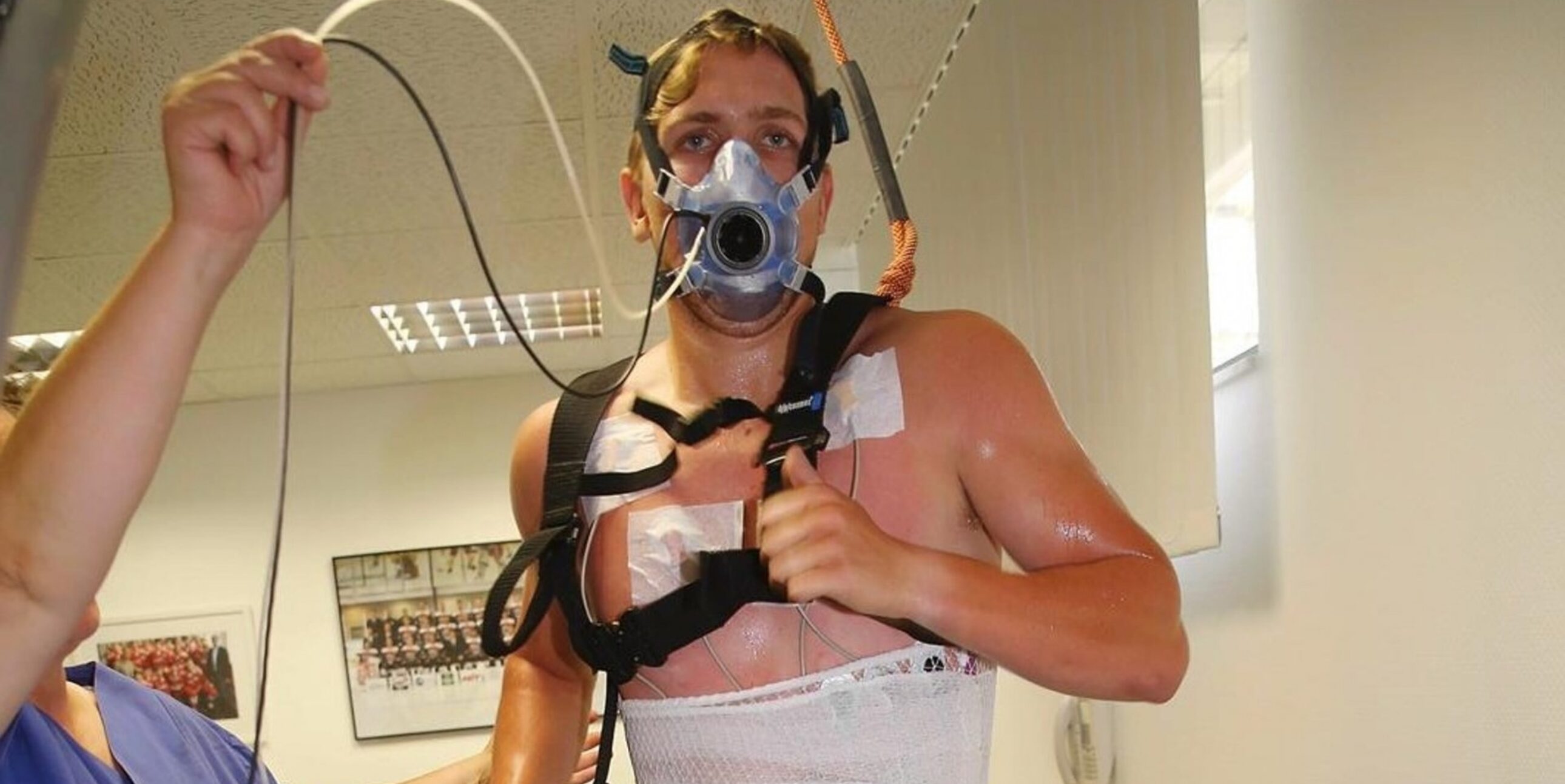 Bild: Haie-Verteidiger Shawn Lalonde beim Fitness-Test (Foto: Klaus Michels)