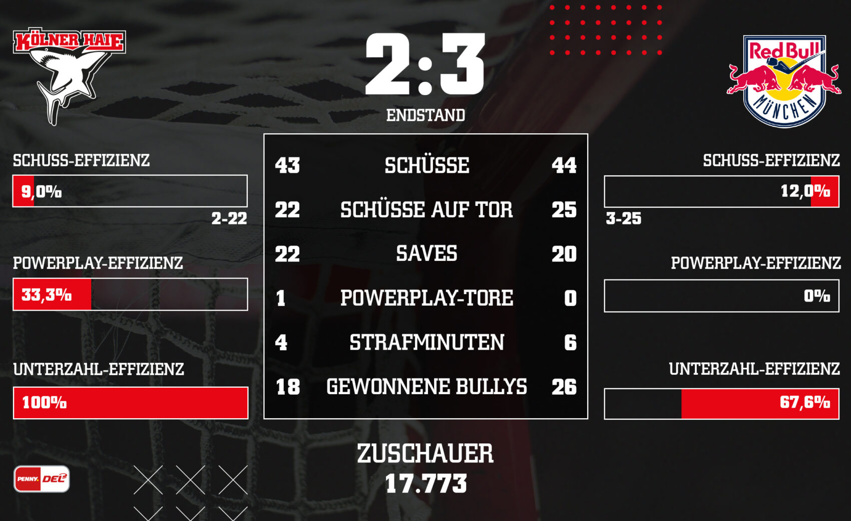 0:1 Yasin Ehliz (Abeltshauser, Hirose) 8. Minute; 0:2 Filip Varejcka (Krämmer, Blum) 16. Minute; 1:2 Joshua Currie (Powerplay/Almquist, MacLeod) 42. Minute; 2:2 Justin Schütz (Almquist, Aubry) 60. Minute; 2:3 Christopher DeSousa (Ehliz, Hirose) 60. Minute