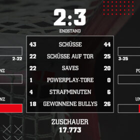 Solch einen Spielbericht haben wir wohl auch noch nicht so oft geschrieben – in einem engen Spiel liegen wir gegen München nach zwei Dritteln verdient mit 0:2 hinten, ehe wir im dritten Drittel eine starke Aufholjagd starten. Josh Currie (42.) und Justin Schütz (60.) zwölf Sekunden (!) vor Schluss scheinen die Partie in die Overtime zu hieven, doch das letztze Wort an einem denkwürdigen Abend haben die formstarken Münchner durch Christopher DeSousa, der 0,2 Sekunden vor Schluss den Siegtreffer erzielt.