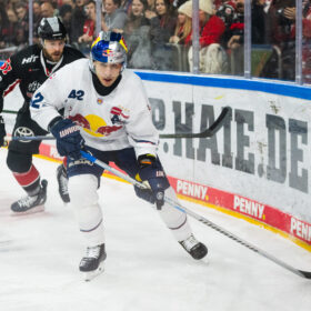 Nach 16 Minuten legte Varejcka für die Gäste danach. Dem Angreifer wurde es im Slot etwas zu einfach gemacht – er hatte viel Platz und nutzte diesen, um einen Schuss unhaltbar für Hudacek zum zweiten Münchner Treffer des Tages abzufälschen. Beinahe hätten wir uns durch Louis-Marc Aubry noch im ersten Drittel auf die Anzeigetafel gebracht, doch im Eins gegen Eins mit RBM-Goalie Matthias Niederberger hatte unser Mittelstürmer knapp das Nachsehen (19.). Daher ging es mit dem 0:2-Rückstand in die erste Drittelpause.