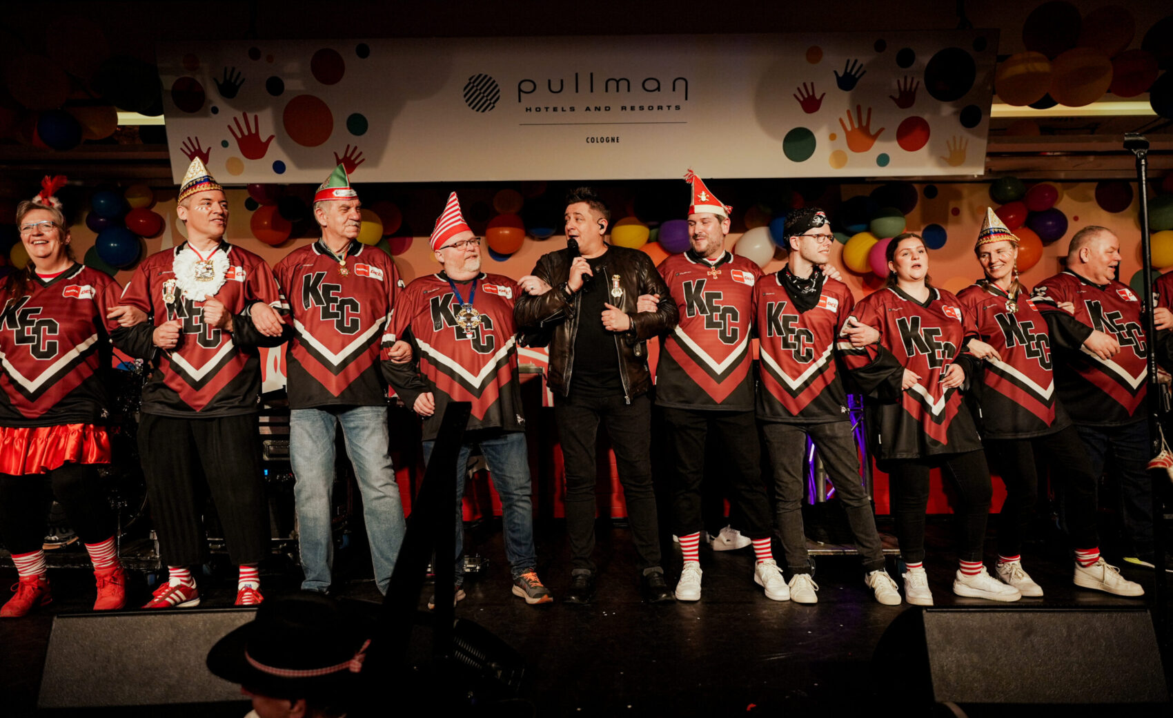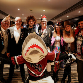 Gemeinsam mit zahlreichen KEC-Fans, Partnern, Freunden und Weggefährten wurde bis tief in die Nacht geschunkelt, gelacht, getanzt – und einfach gefeiert. Erstmals seit vielen Jahren – begünstigt durch die aktuelle Olympia-Pause – waren auch unsere Spieler mit dabei. Für alle war es die erste Karnevalssitzung mit den Haien, für einige ihre erste Sitzung überhaupt.