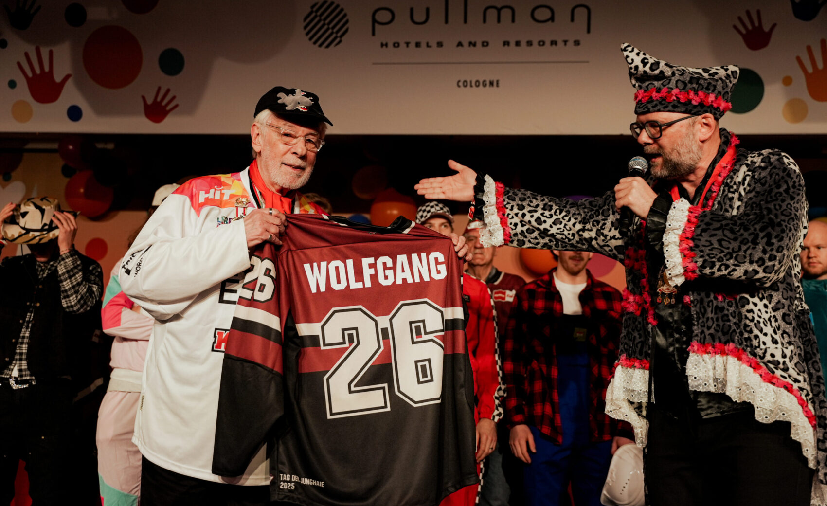 Zu Beginn des Abends wurde unser langjährige Sitzungsleiter Wolfgang Nagel von Haie-Geschäftsführer Philipp Walter auf der Bühne verabschiedet. Ein bewegender Moment für die Haie-Familie, verbunden mit großem Dank für viele Jahre voller Herzblut und kölscher Gelassenheit. Mit großer Souveränität und sichtbarer Freude leitete anschließend Alexander Dick als neuer Sitzungsleiter seine erste Haie-Sitzung.