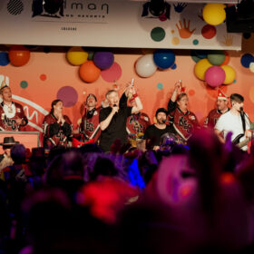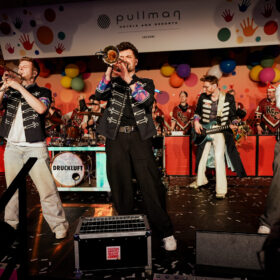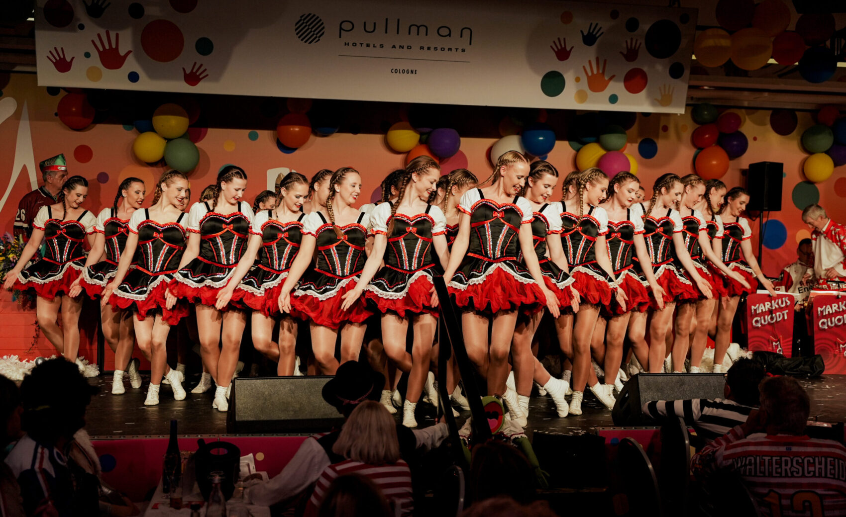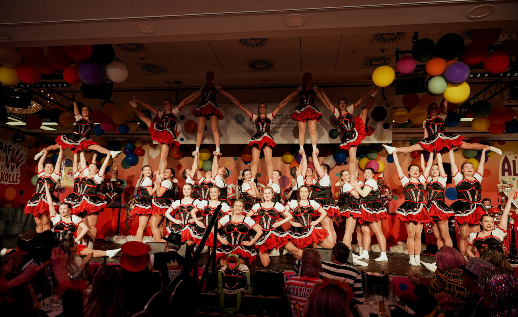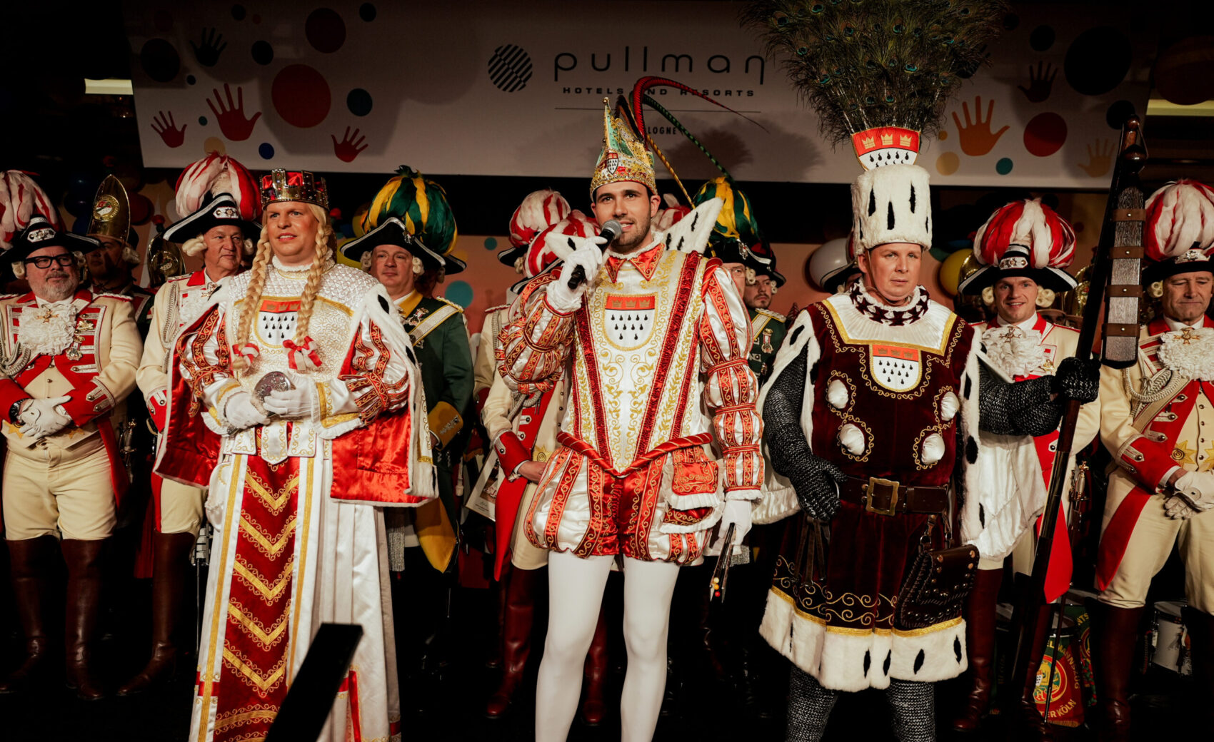 Als erstes Highlight begrüßte er das Kölner Karnevals Dreigestirn im Saal des Pullman Hotels, das die Sitzung standesgemäß mit kölschem Jeföhl einläutete. Musikalische und tänzerische Spitzenklasse boten anschließend das Traditionskorps der Altstädter Köln 1922 e.V., Kasalla, Cat Ballou, die Domstürmer, Brings, die Tanzgruppe Kölner Paulinchen, Lupo und Druckluft. Ein Programm, das den Saal immer wieder zum Beben brachte.