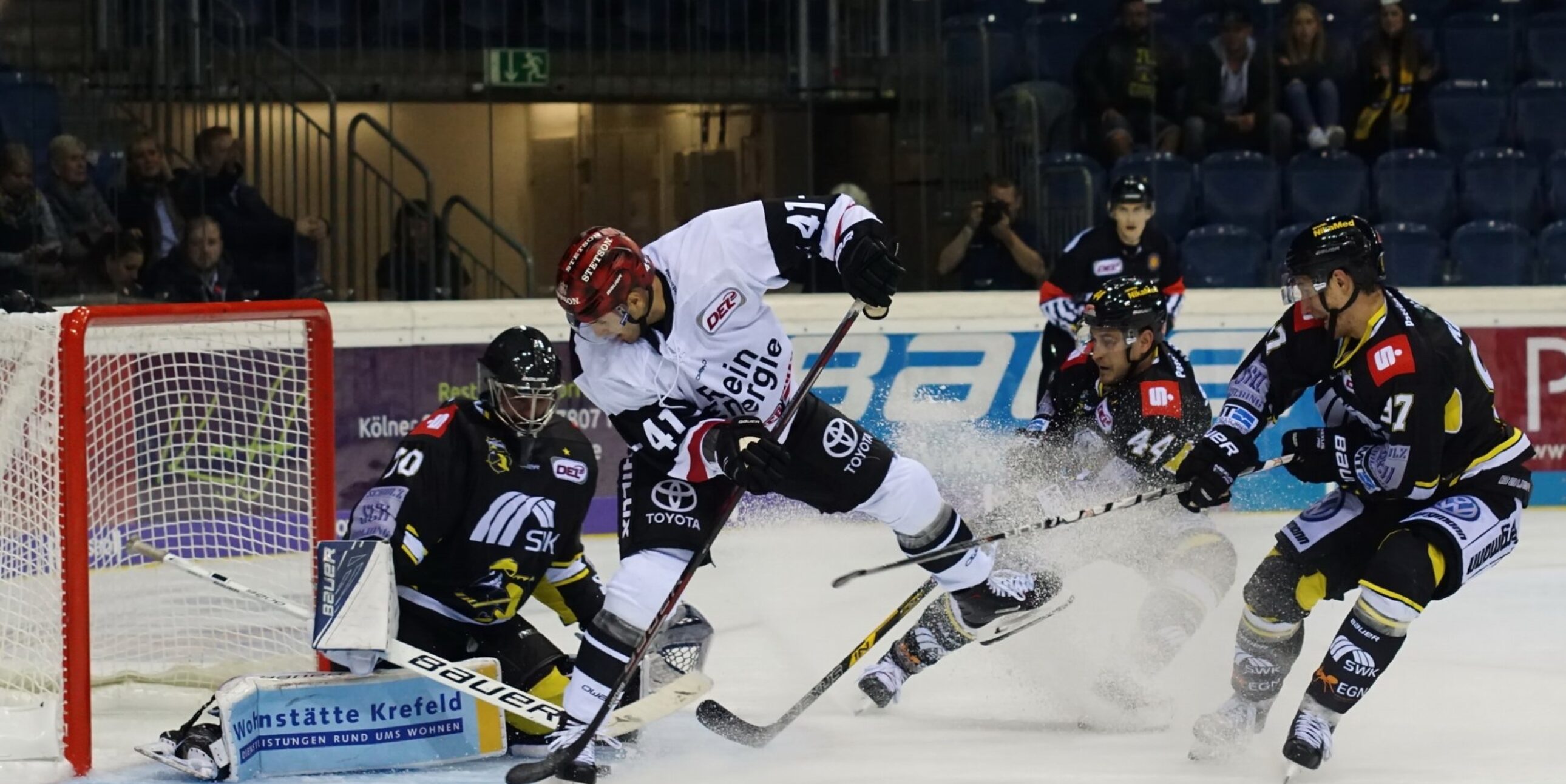 Der Schlussabschnitt begann mit einem unglücklichen Gegentor gegen den KEC: Einen Abpraller vom Pfosten nutzte Pietta für sein drittes Tor (44.). Im weiteren Verlauf glitt den Haien das Spiel dann aus der Hand. Marcel Müller in Überzahl (51.), Mikko Vainonen (53.) und erneut Pietta (54.) schraubten das Ergebnis in kurzer Zeit auf 7:3 für Krefeld. Justin Shugg vergab zwischenzeitlich einen Penalty (51.).