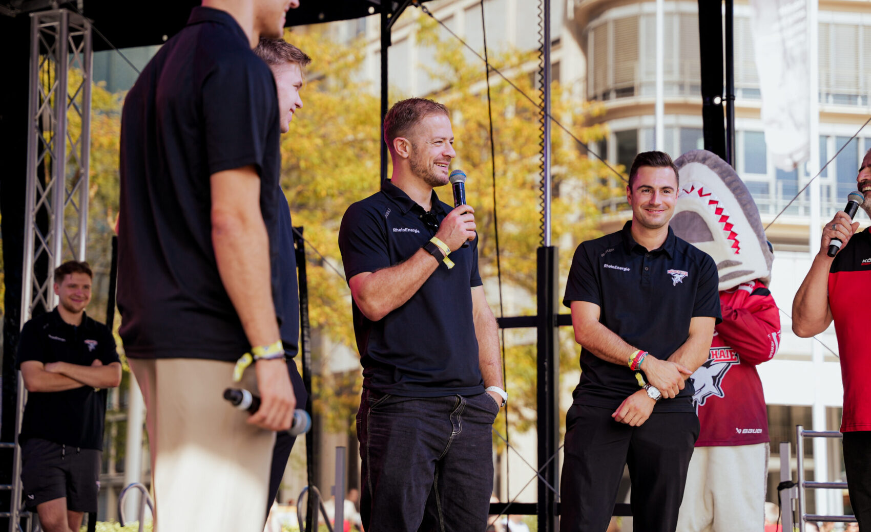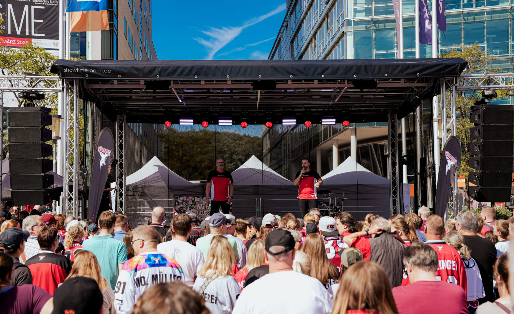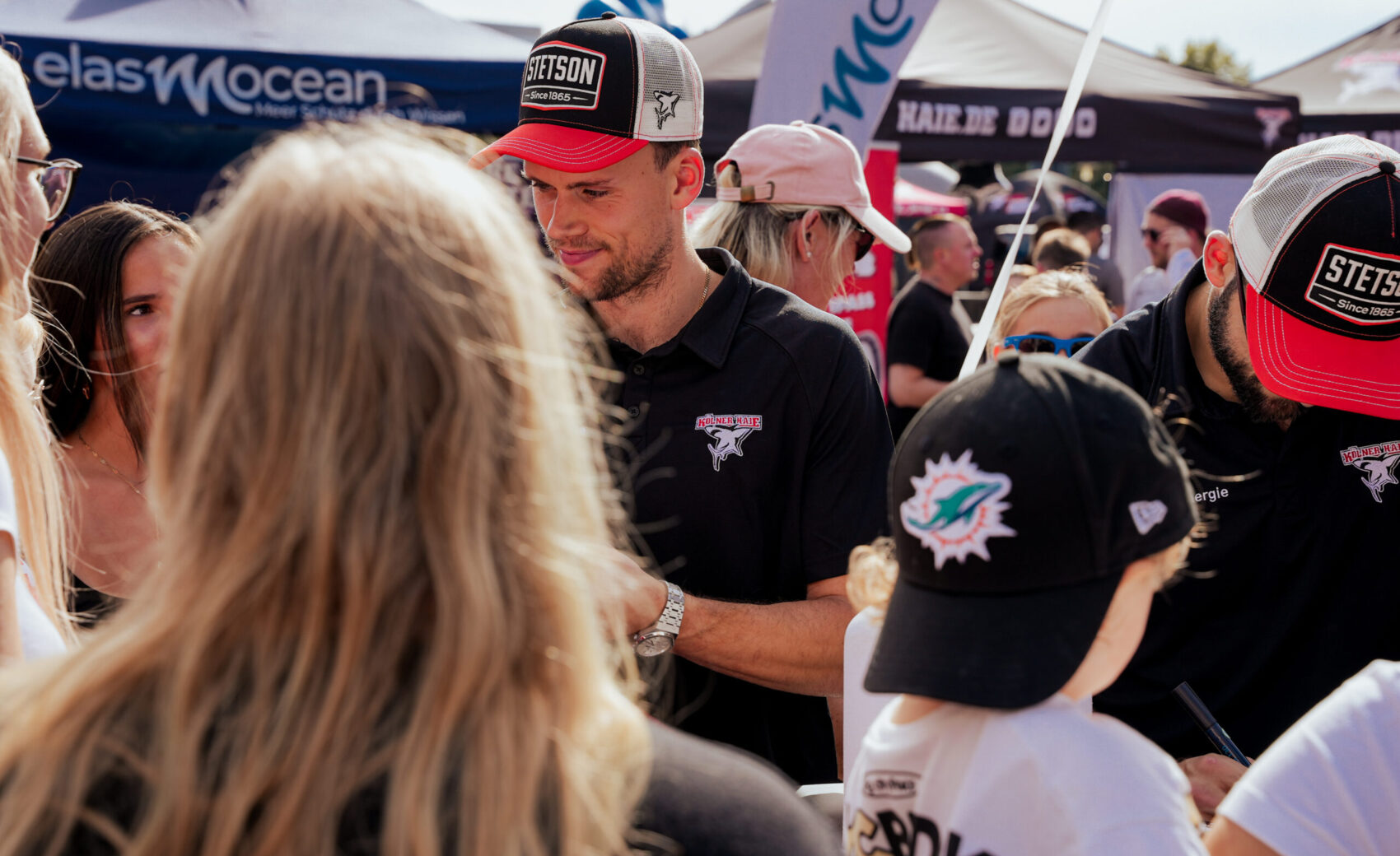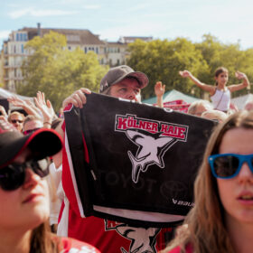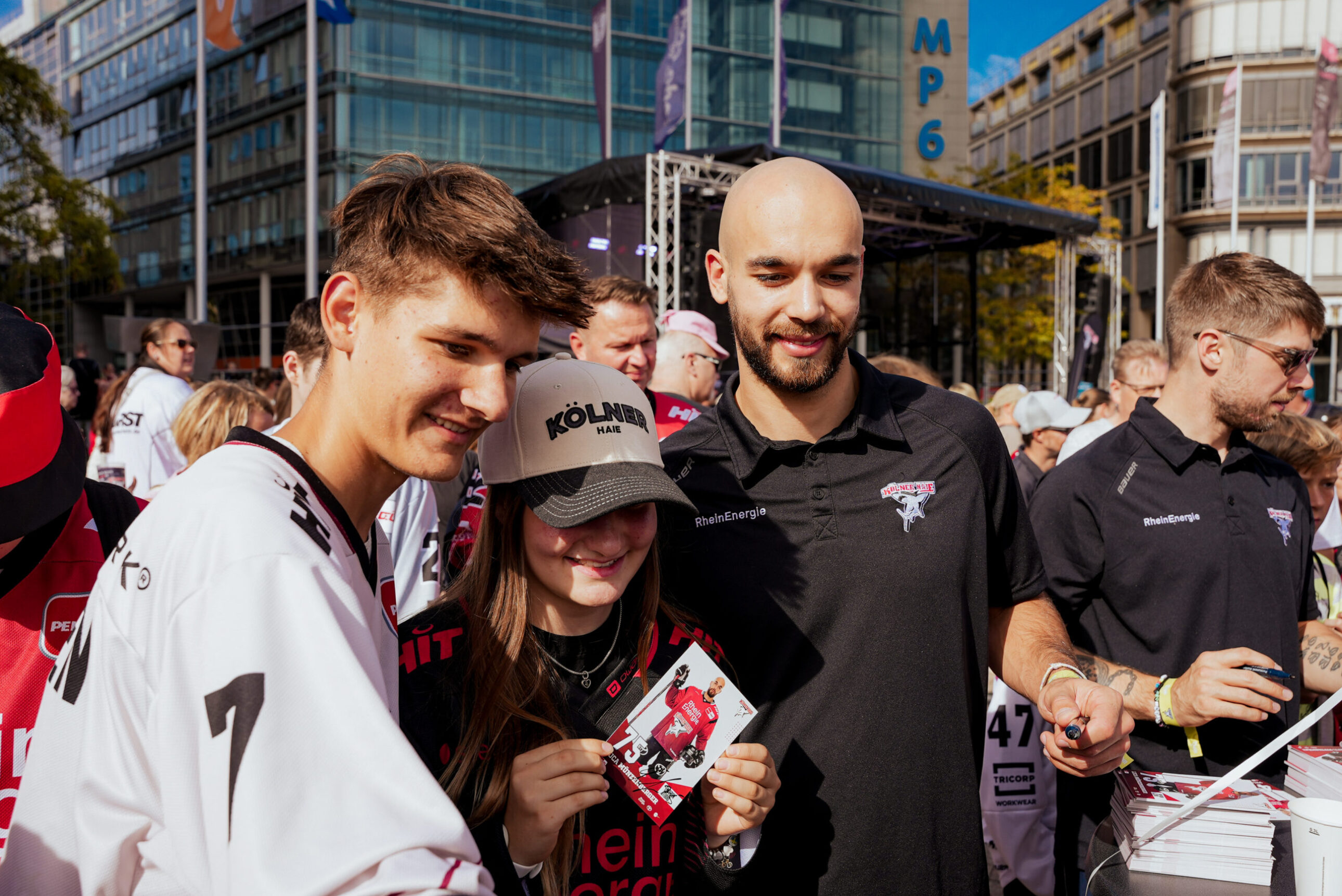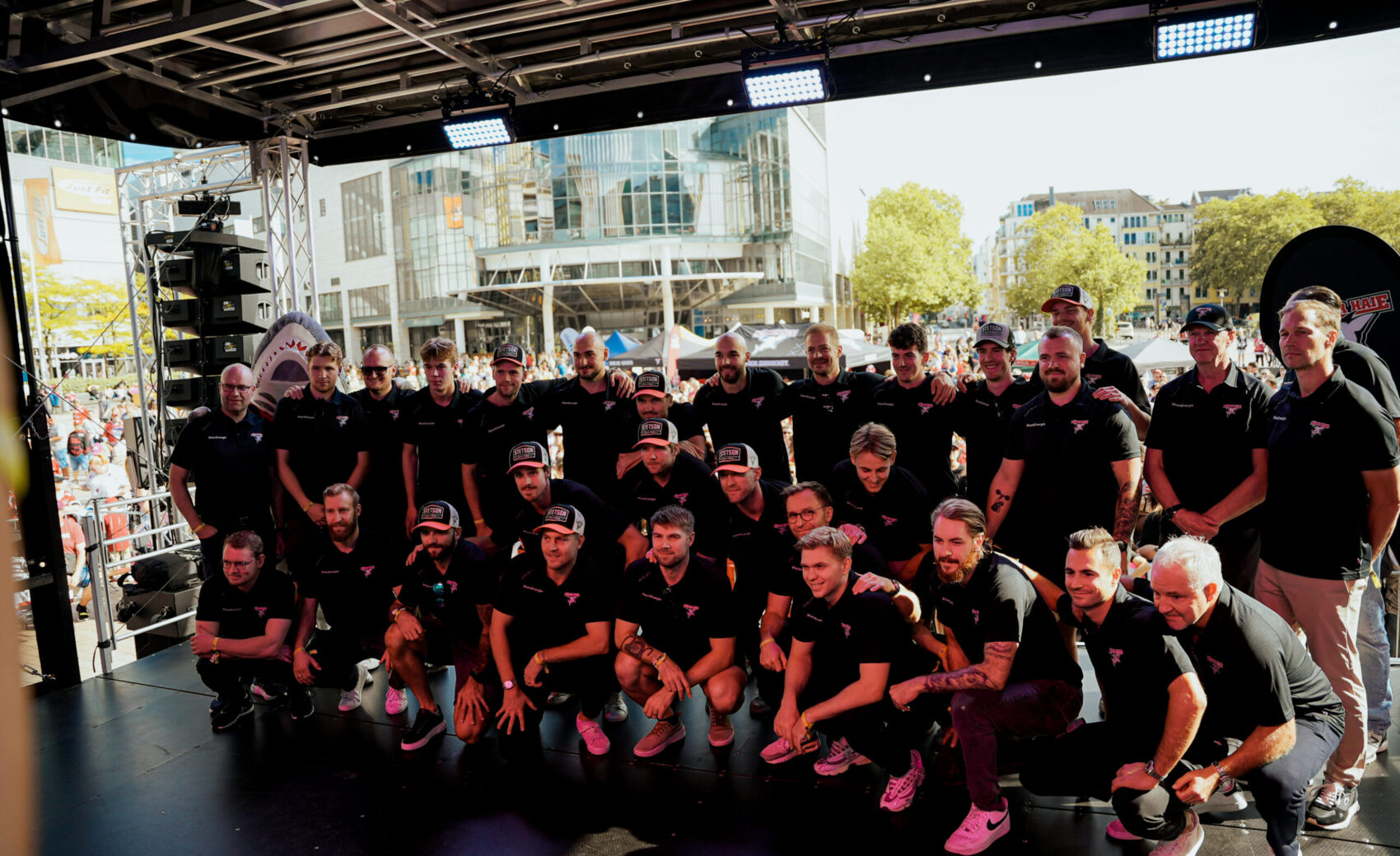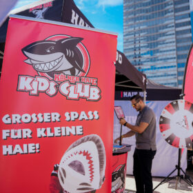 Das war eine schöne Saisoneröffnungsfeier mit euch! Am Samstag, knapp eine Woche vor unserem ersten Saisonspiel, verbrachten wir zusammen mit circa 4.000 Fans einen wunderbaren Tag am MediaPark Köln. Zur Saisoneröffnungsfeier ließ uns auch das Wetter nicht im Stich, welches sich von seiner besten Seite zeigte. Jede Menge Stände, ein kleiner Haie-Film sowie die Möglichkeit, den Spielern ganz nahe zu kommen, rundeten den Tag mit euch ab. Wir lassen den Tag in Form einer Bildergalerie sowie eines Videos Revue passieren.