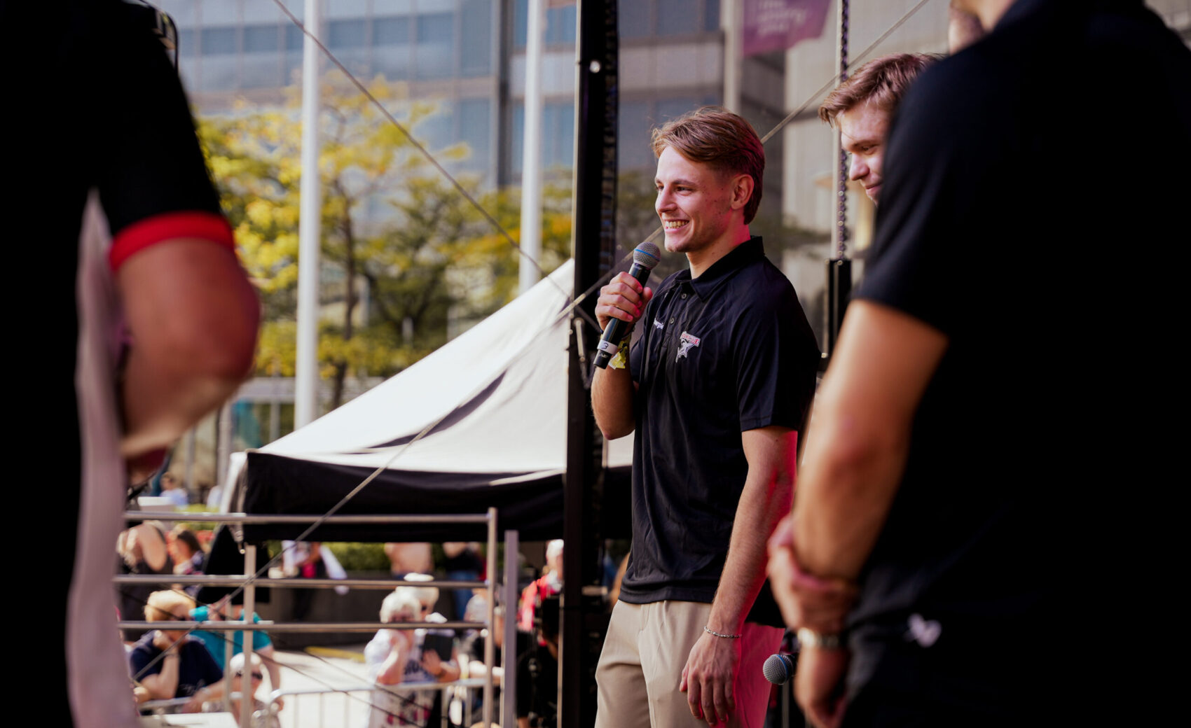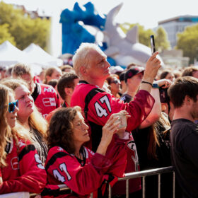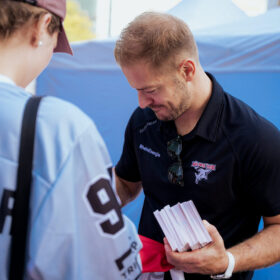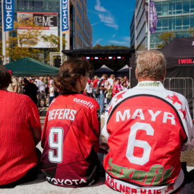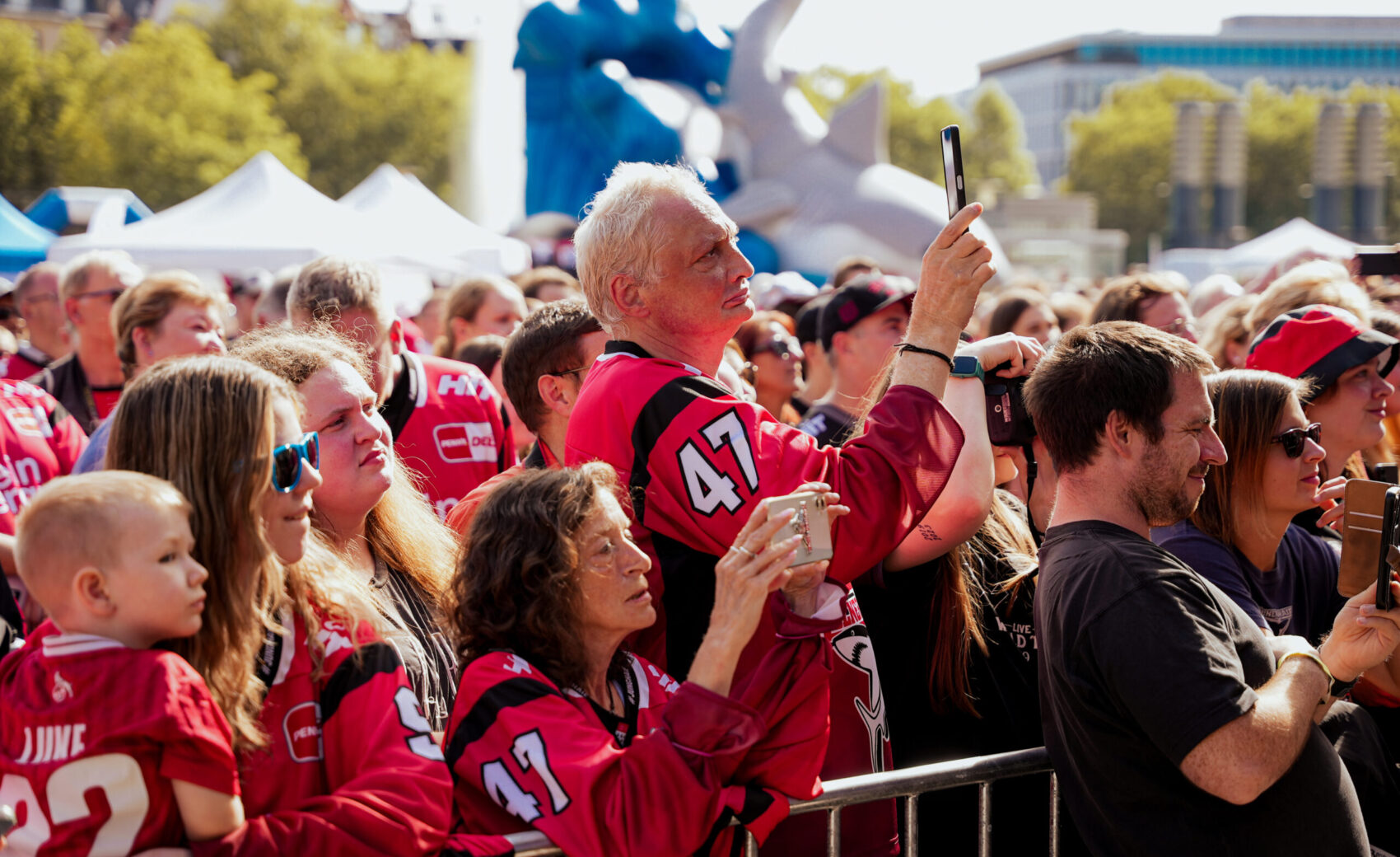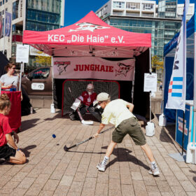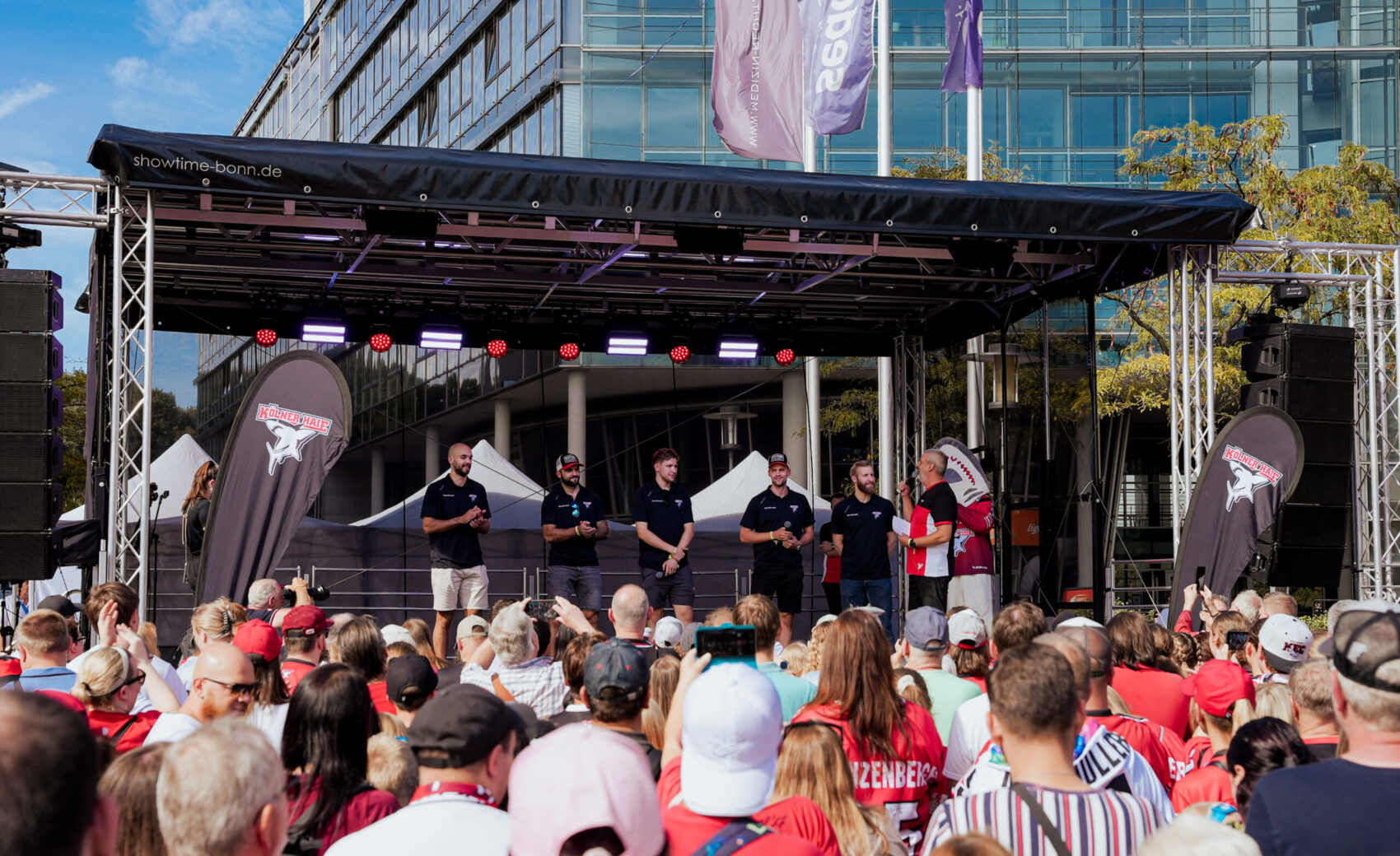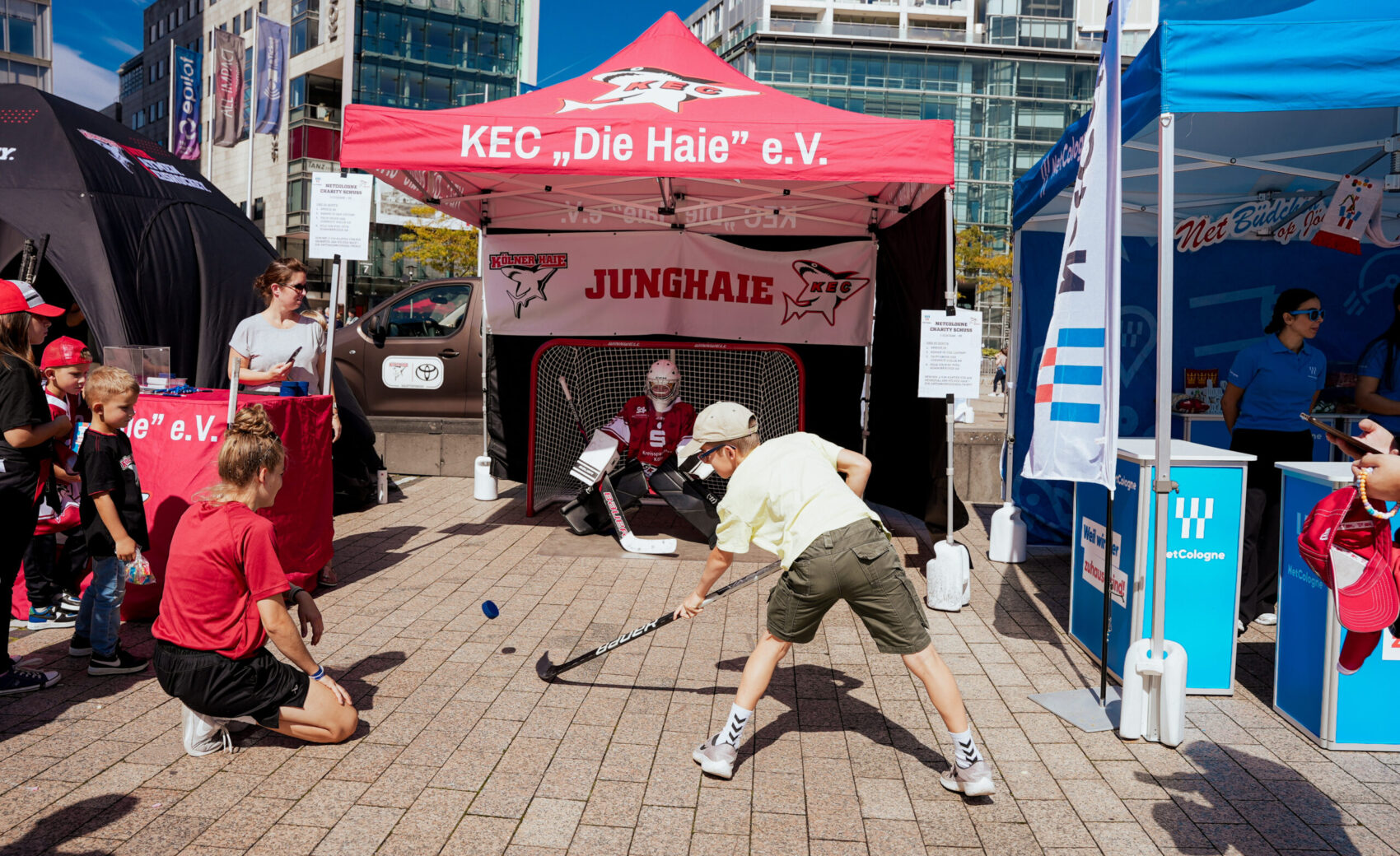 Das war eine schöne Saisoneröffnungsfeier mit euch! Am Samstag, knapp eine Woche vor unserem ersten Saisonspiel, verbrachten wir zusammen mit circa 4.000 Fans einen wunderbaren Tag am MediaPark Köln. Zur Saisoneröffnungsfeier ließ uns auch das Wetter nicht im Stich, welches sich von seiner besten Seite zeigte. Jede Menge Stände, ein kleiner Haie-Film sowie die Möglichkeit, den Spielern ganz nahe zu kommen, rundeten den Tag mit euch ab. Wir lassen den Tag in Form einer Bildergalerie sowie eines Videos Revue passieren.