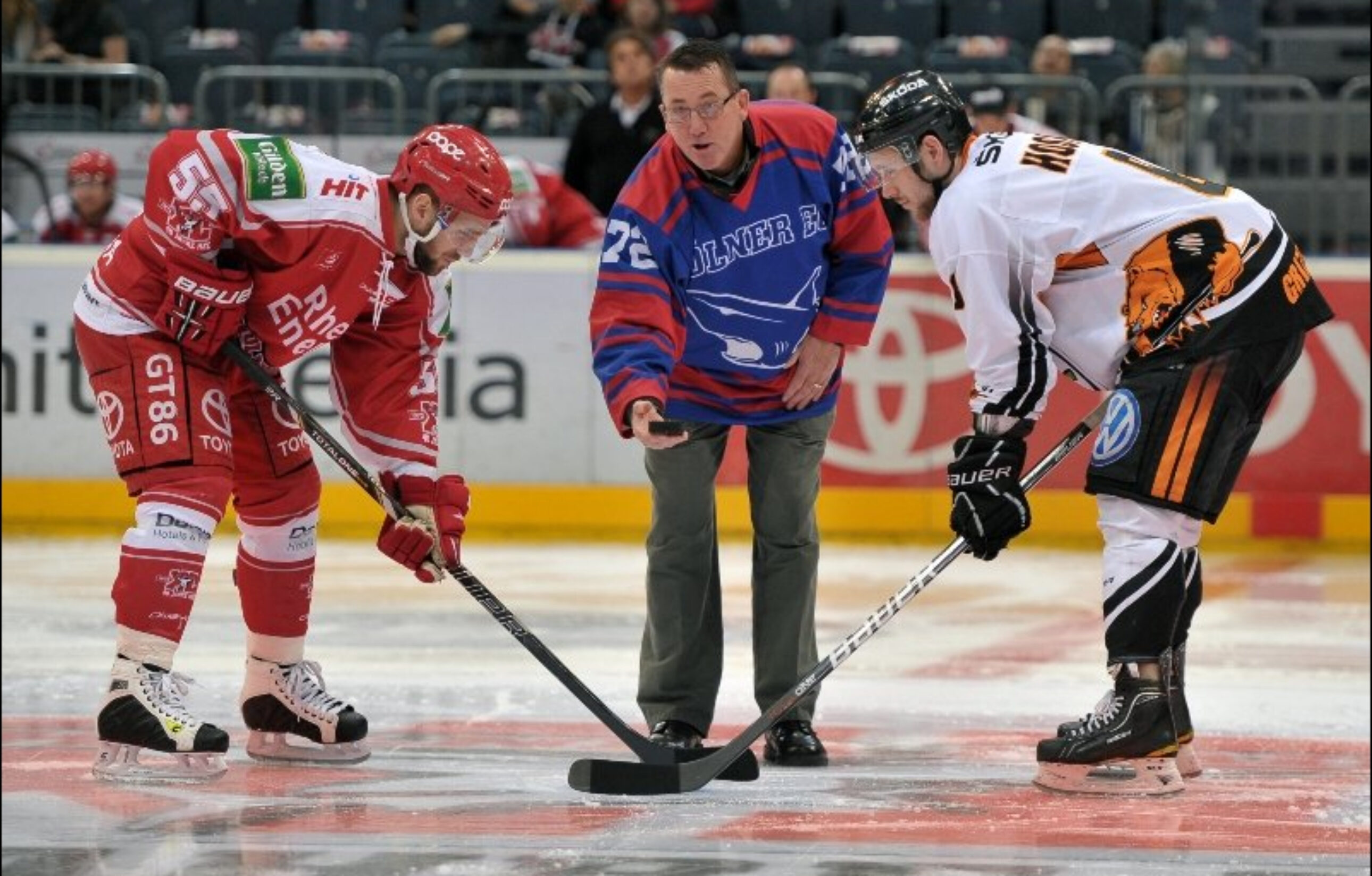 Tom Thornbury trug von 1986 bis 1992 sechs Jahre lang das Trikot der Kölner Haie. In 232 Spielen für den KEC schoss der Kanadier 76 Tore und gab 139 Vorlagen. Zwei Mal feierte Thornbury die Deutsche Meisterschaft mit Köln – jetzt ist er zurück in der Domstadt. Für das große Jubiläumsspiel der Haie am Donnerstag (08.11.) in der LANXESS arena reiste Thornbury extra aus Kanada an. Beim Heimspiel gegen Wolfsburg vollzog er unter großem Beifall der Zuschauer das symbolische Eröffnungsbully. „Ich kann es kaum erwarten“, verriet Thornbury im Drittelpausen-Interview im Hinblick auf das Jubiläumsspiel.