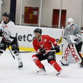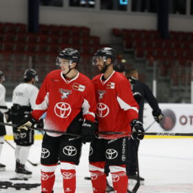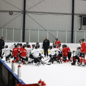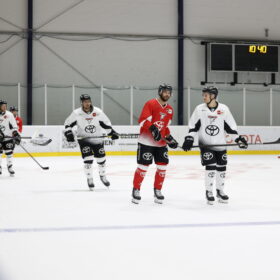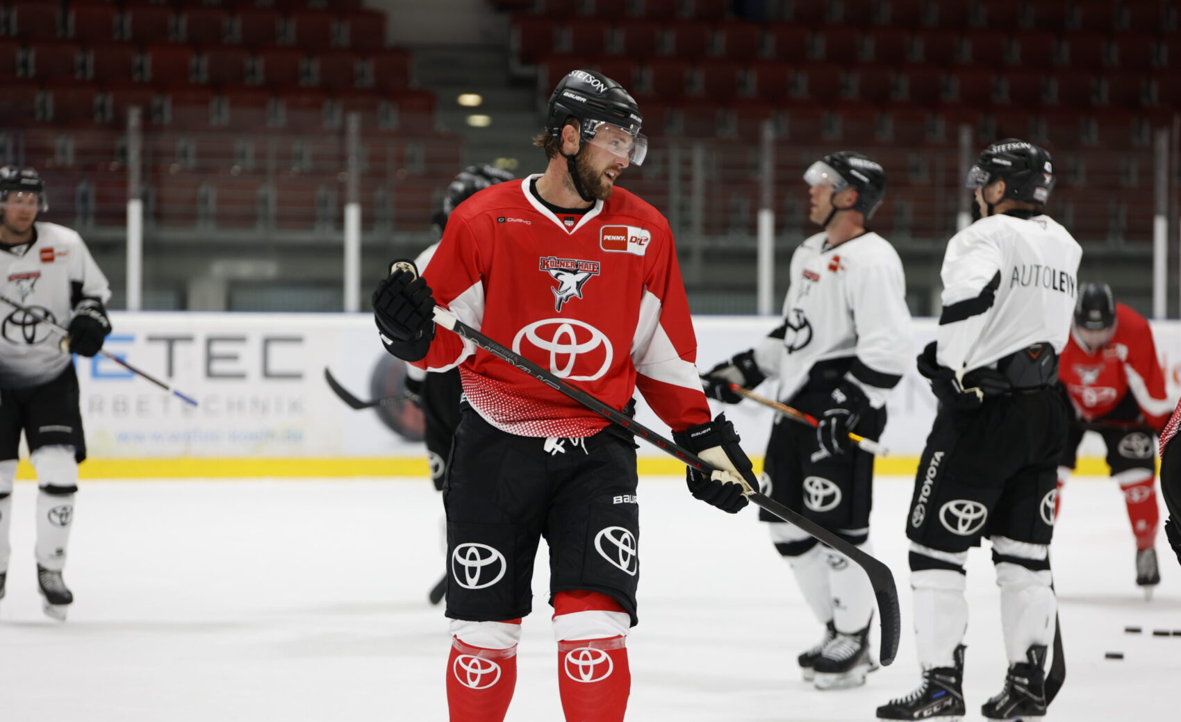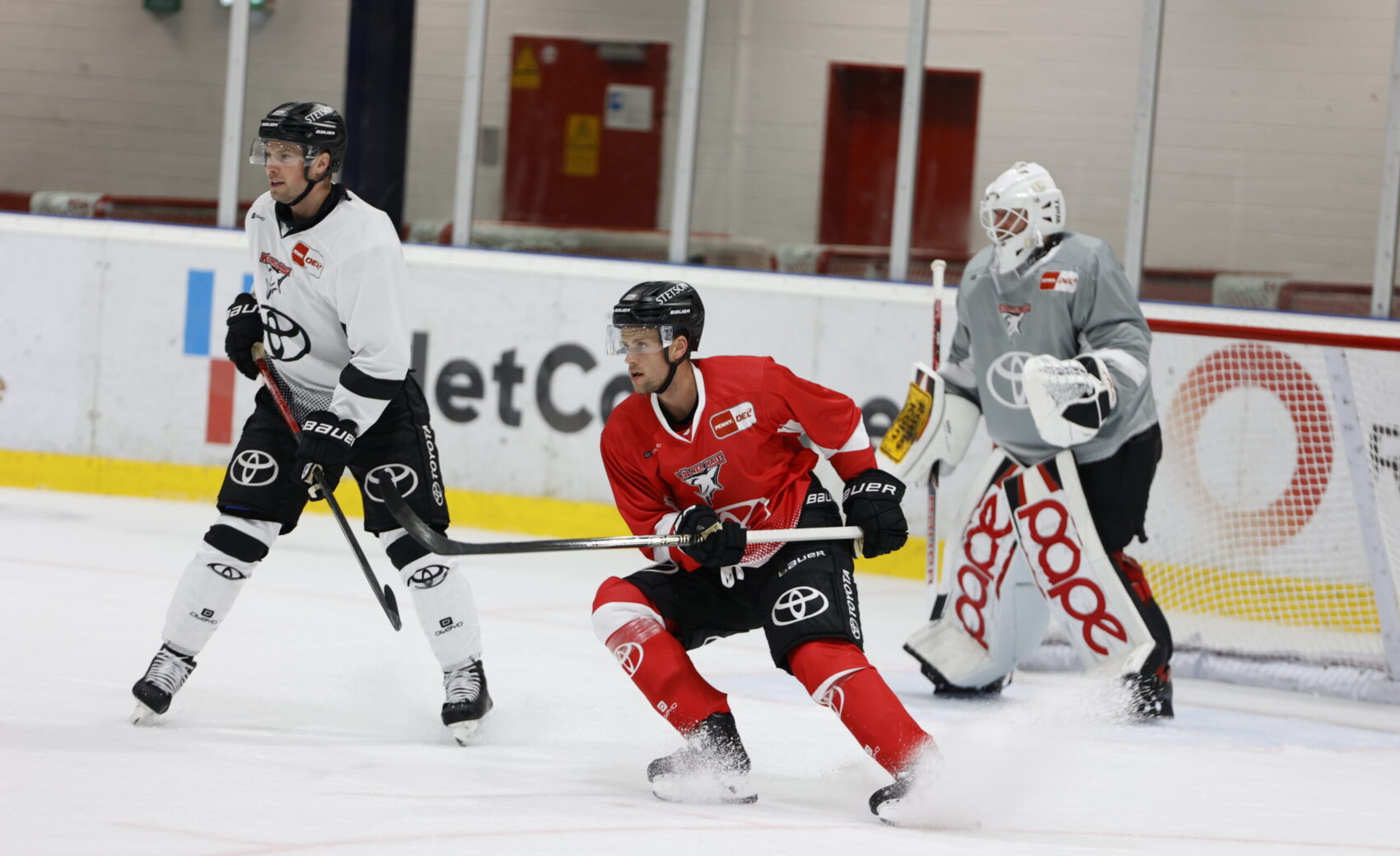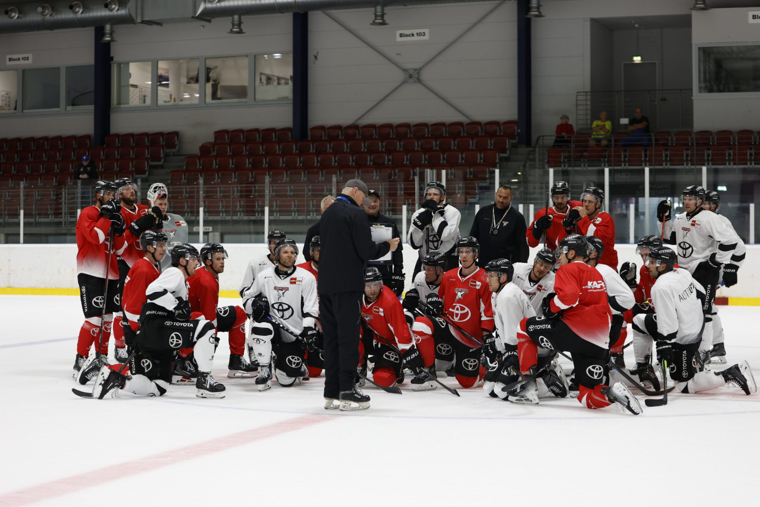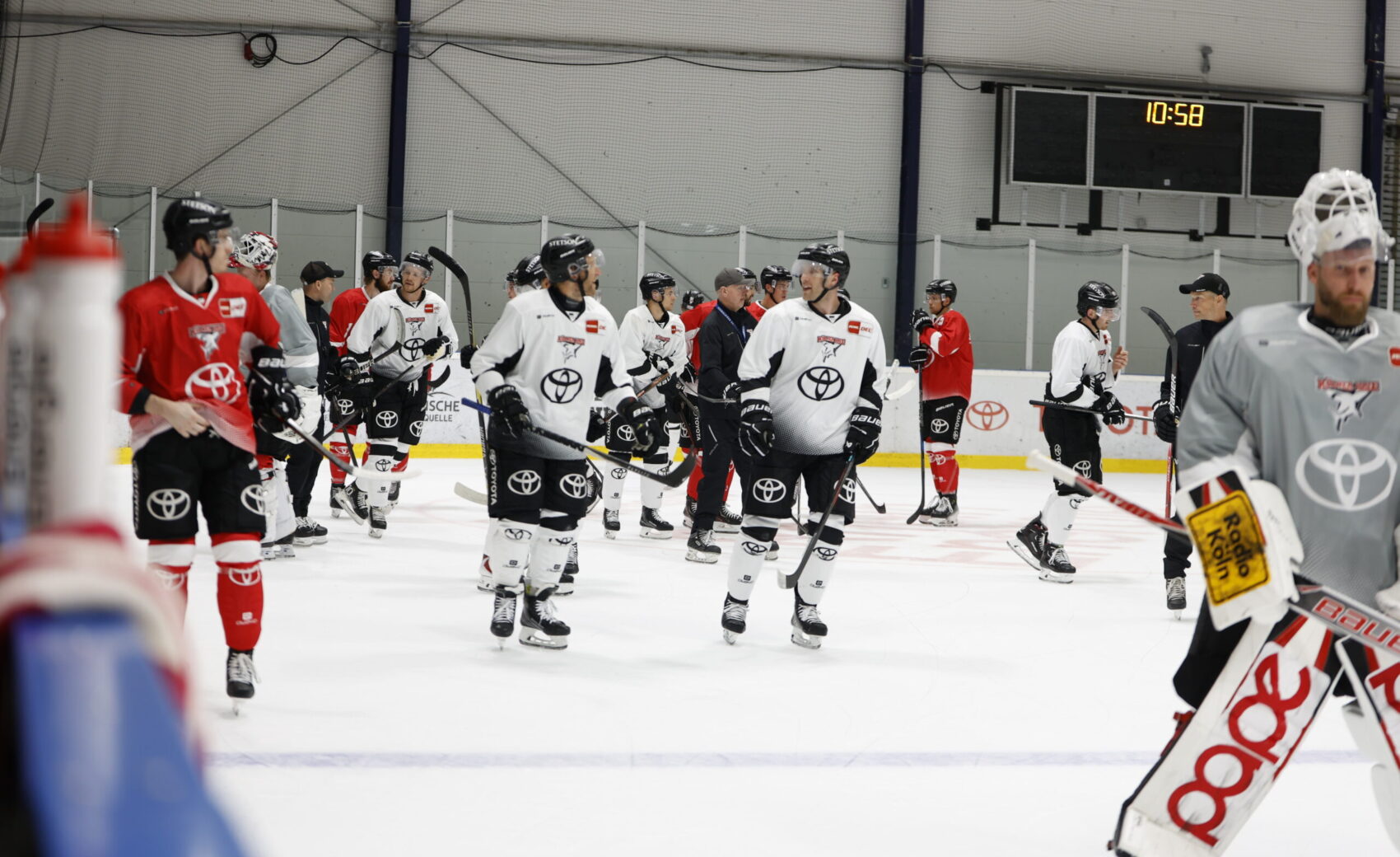 Ab 10:30 Uhr wird es richtig voll auf dem frischgemachten Eis, allen steht ein Lächeln im Gesicht. Für unsere Neuzugänge Nate Schnarr, Valtteri Kemiläinen, Oliwer Kaski und Patrick Russell war es übrigens das erste Mal auf dem Eis der KA2. Den Abschluss der Gruppe macht Cheftrainer Kari Jalonen, der seine Jungs anschließend das erste Mal gemeinsam im Mittelkreis versammelt. Der Finne, sowie seine Co-Trainer Manuel Kofler und Fredrik Norrena sprechen zur Mannschaft und geben Anweisungen für die ersten Übungen. Forechecking und Spieleröffnung stehen auf dem Programm, es ist ordentlich Tempo drin.