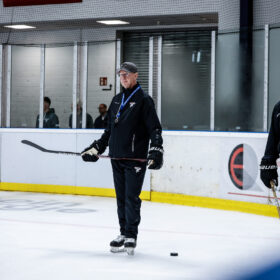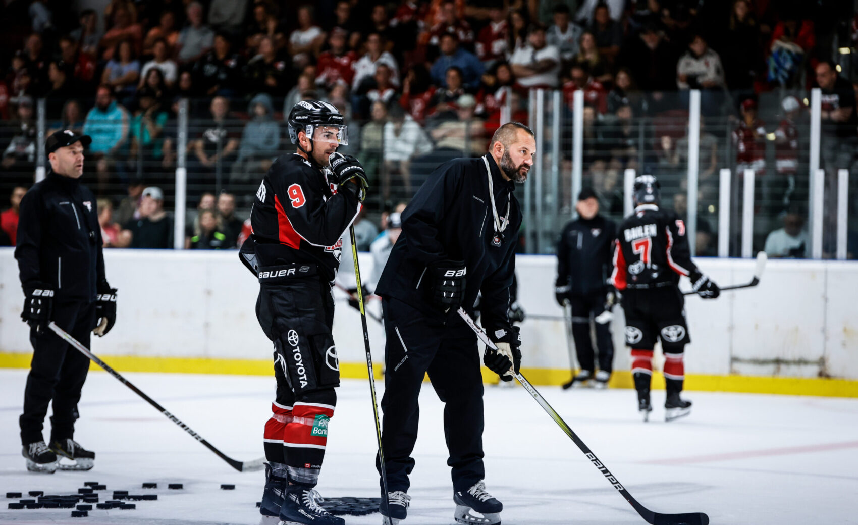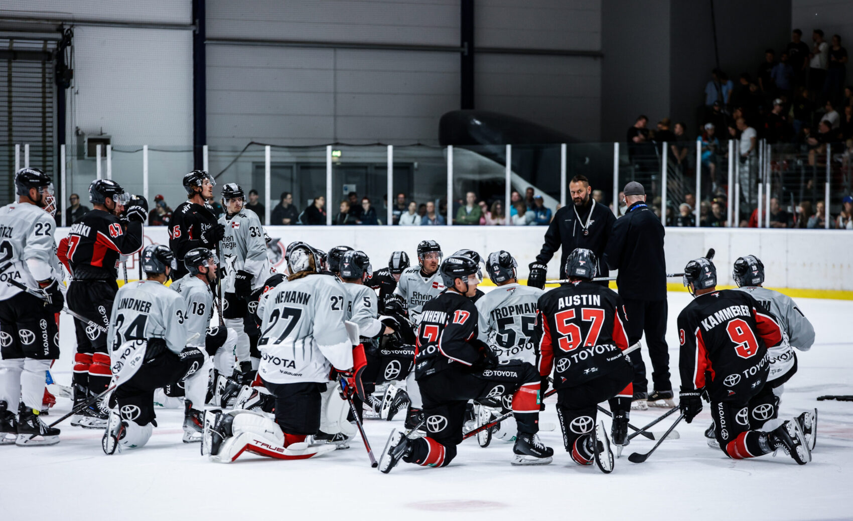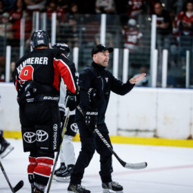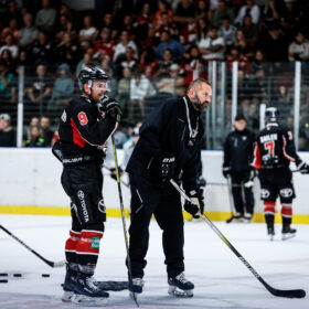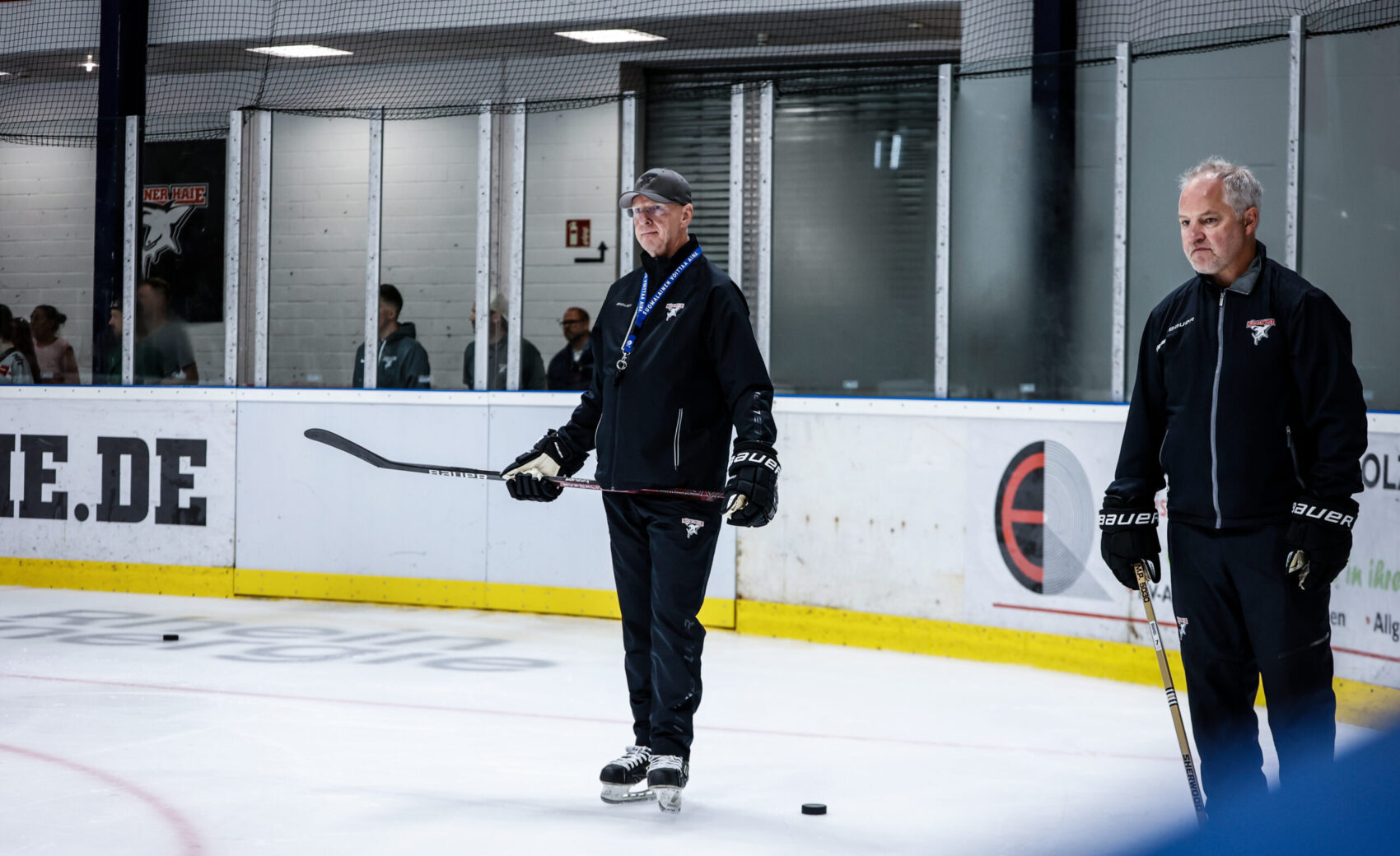 Um kurz nach 14:00 Uhr – nachdem unser Geschäftsführer Philipp Walter ein paar Worte an die Fans gerichtet hatte – ließen wir die Haie los. Im bis auf den letzten Platz gefüllten Haie-Zentrum kamen unsere Spieler unter großem Applaus aufs Eis und trainierten rund eine Stunde lang. Cheftrainer Kari Jalonen gab zusammen mit seinem Trainerteam Anweisungen, ließ es sich aber auch nicht nehmen, am Stadionmikrofon Rede und Antwort zu stehen.