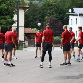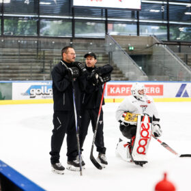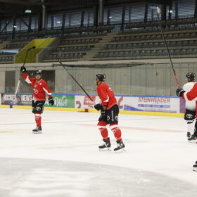 auch die zweite Nacht in Österreich war sehr gut. Für uns startete der Tag wieder mit einem leckeren Frühstück im Hotel. Danach ging es für uns zu Fuß zur Eishalle, wo wir ein kurzes Meeting hatten – heute standen ja gleich zwei Eiseinheiten für uns an, eine vormittags und eine am Nachmittag. Nach dem Warm-Up, was wir wieder im Alpenstadion von Kapfenberg absolvierten, begaben wir uns auf’s Eis. Gut anderthalb Stunden ging die erste Trainingseinheit des Tages. Passpiel, Abschlüsse und Zweikämpfe standen im Fokus des Trainings.