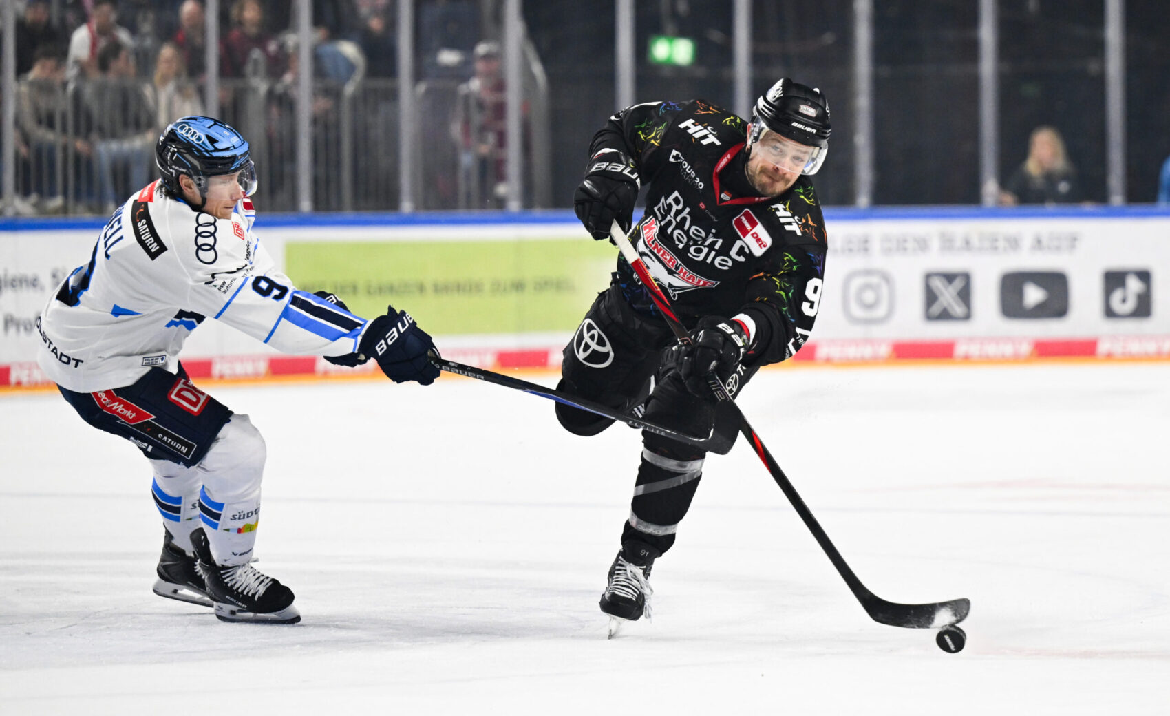 Vor 18.600 Fans feierten wir am Diversity Day einen starken 6:3-Heimsieg gegen den ERC Ingolstadt und drehten dabei nach frühem Rückstand eine intensive und packende Partie zu unseren Gunsten. Passend zum besonderen Spieltag lief unser Team in einem speziellen Diversity Trikot auf: In dunklem Schwarz-Grau mit rotem Kragen und bunten Haien an Schultern und Saum, die für Vielfalt und Zusammenhalt stehen. Im inneren Kragen ist zudem unser gemeinsames Diversity Day-Motto „Lebe wie du bist“ verewigt.