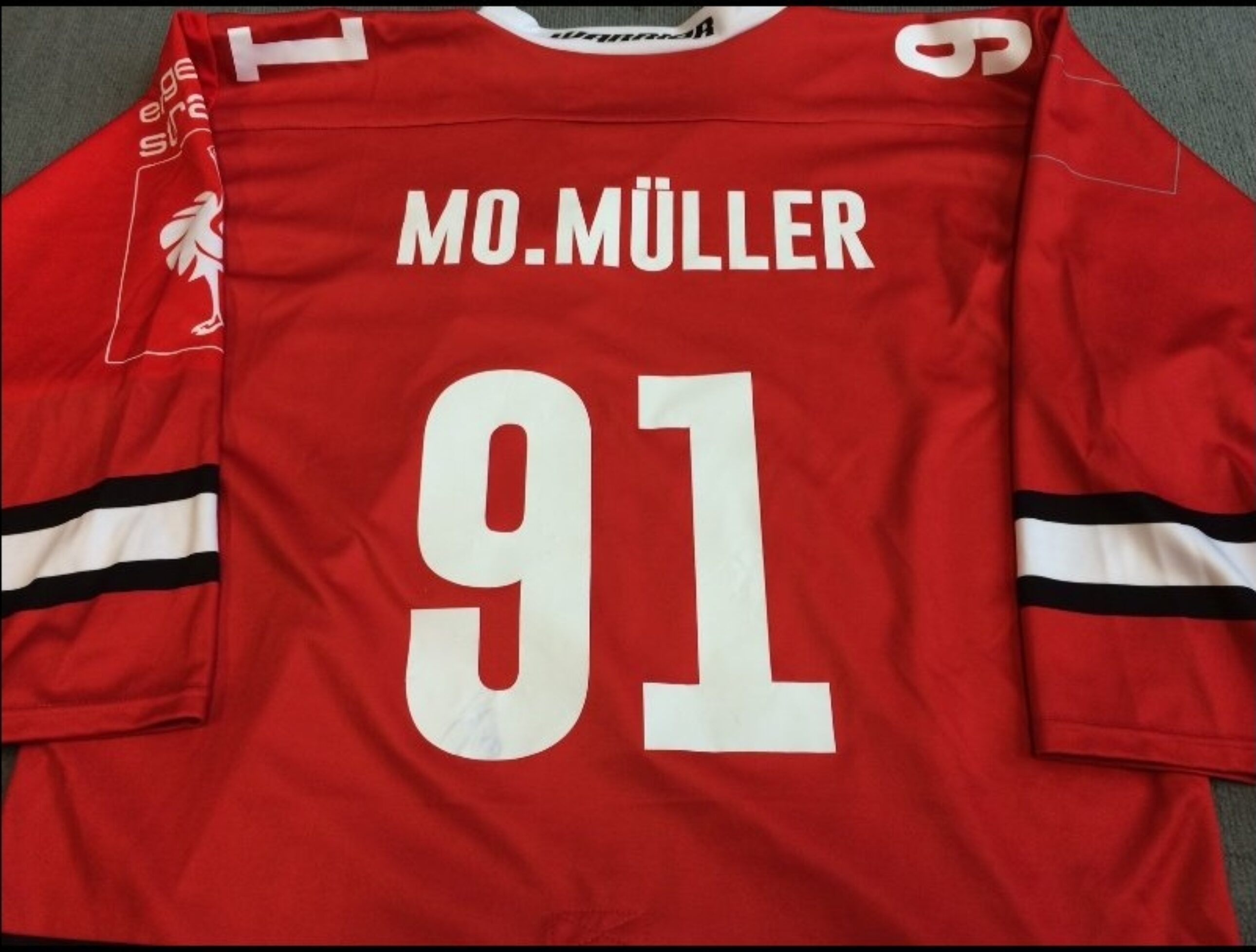 Auch am heutgen Sonntag beim Heimspiel gegen die Schwenninger Wild Wings hat John Tripp einen tollen Preis im Gepäck. Dieses Mal gibt es ein „gameworn“ CHL-Trikot von Moritz Müller zu gewinnen. Das Trikot wurde von Moritz Müller in den CHL-Spielen 2014/15 auf dem Eis getragen.
