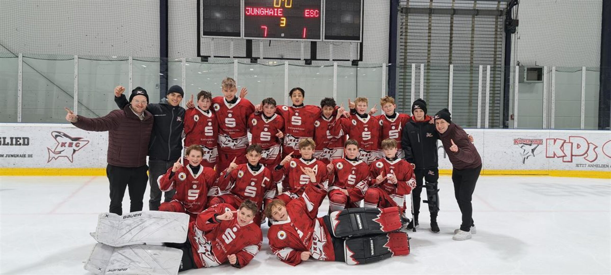 Unterschiedlicher könnte die Gemütslage bei der U17 und U15 der Junghaie wohl nicht sein! Während das U15-Team von Cheftrainer Julian Karadakic auch mit einem personell stark ausgedünnten Kader durch ein 6:2 über die Löwen Frankfurt endgültig das Ticket für das Endturnier der U15-Junioren um die Deutsche Meisterschaft vom 21. bis 23. März in Düsseldorf gelöst hat (fünf Spielrunden vor Hauptrundenabschluss ist der U15 ein Platz unter den ersten Zwei in der Regionalliga Nord auch rechnerisch nicht mehr zu nehmen), verpasste die U17 von Headcoach Jannik Melzer am Sonntag einen Heimsieg gegen die Starbulls Rosenheim auf überaus dramatische Art und Weise.