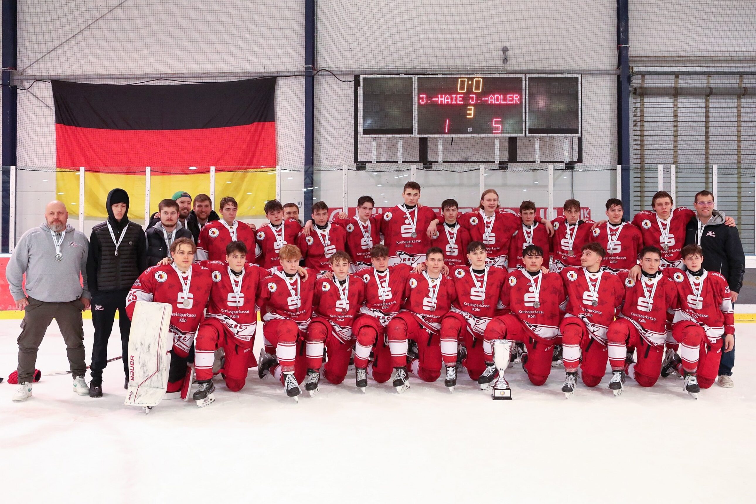 Wir gratulieren den Jungadler Mannheim recht herzlich zur verdienten Deutschen Meisterschaft. Auch wenn aktuell natürlich noch ein wenig Frust vorherrscht, blicken wir mit Stolz auf das Erreichte unserer U17 um Cheftrainer Jannik Melzer! Die Vize-Meisterschaft ist ebenfalls ein schöner Erfolg!