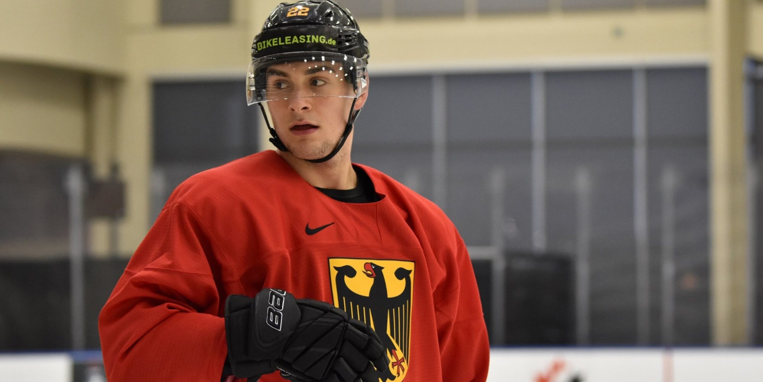 Im Bild: U20-Haie-Spieler Maxi Glötzl beim DEB-Training (DEB)