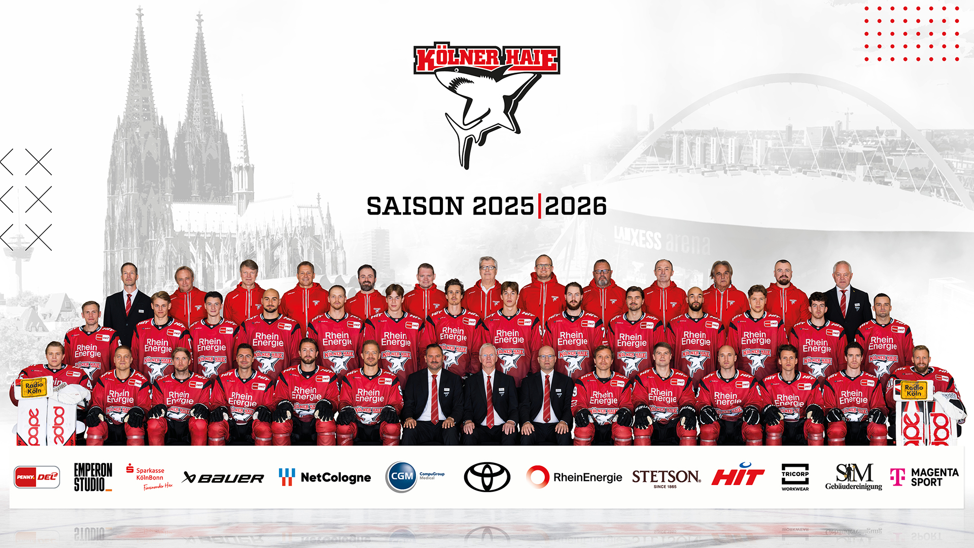 Mittlere Reihe (v.l.): #62 Parker Tuomie, #17 Jan Luca Sennhenn, #46 Kevin Niedenz, #22 Maximilian Glötzl, #76 Nate Schnarr, #64 Noah Münzenberger, #15 Louis-Marc Aubry, #65 Marco Münzenberger, #77 Ryan MacInnis, #7 Oliwer Kaski, #75 Luca Münzenberger, #74 Sten Fischer, #5 Robin van Calster, #26 Dominik Uher