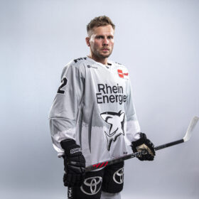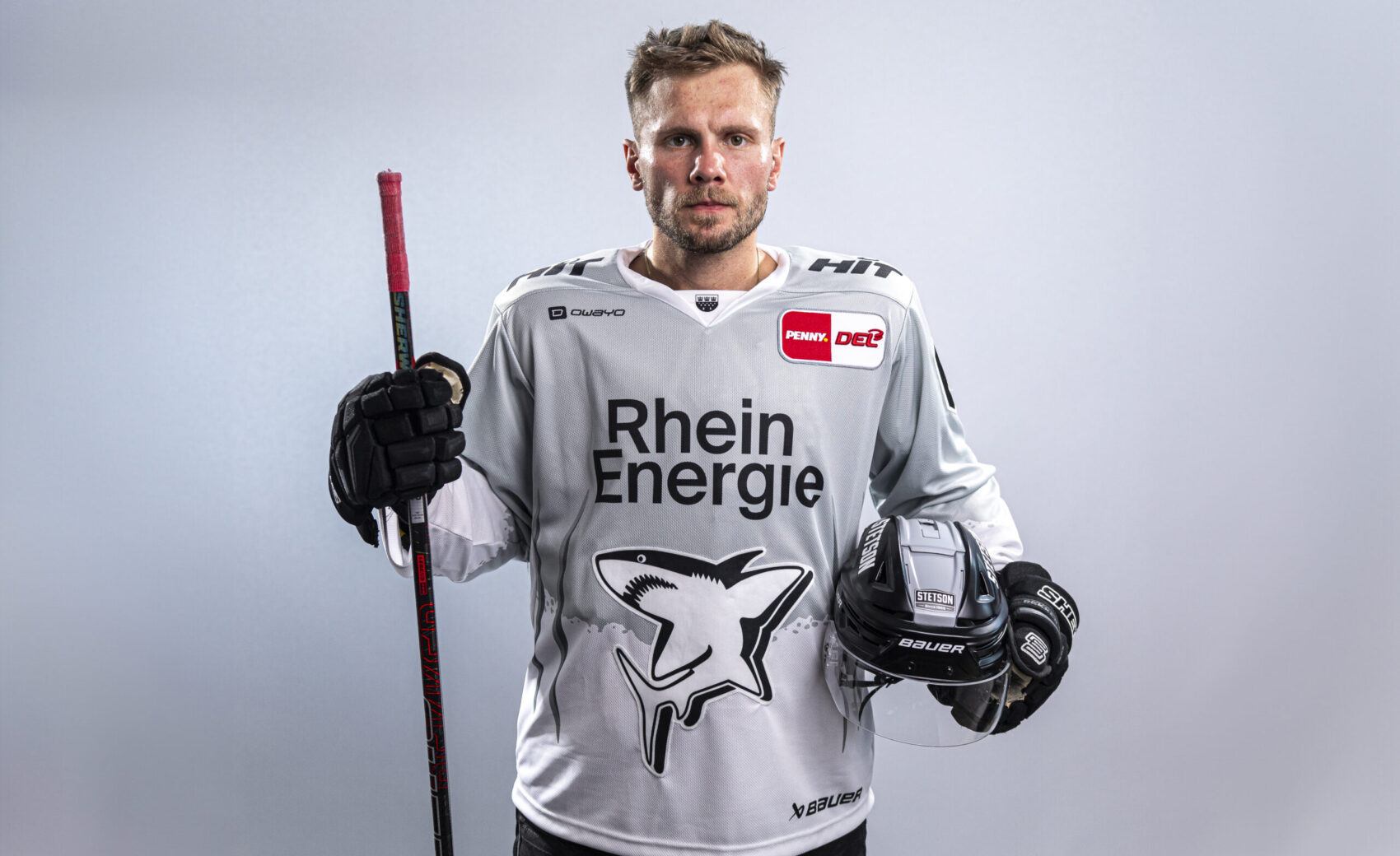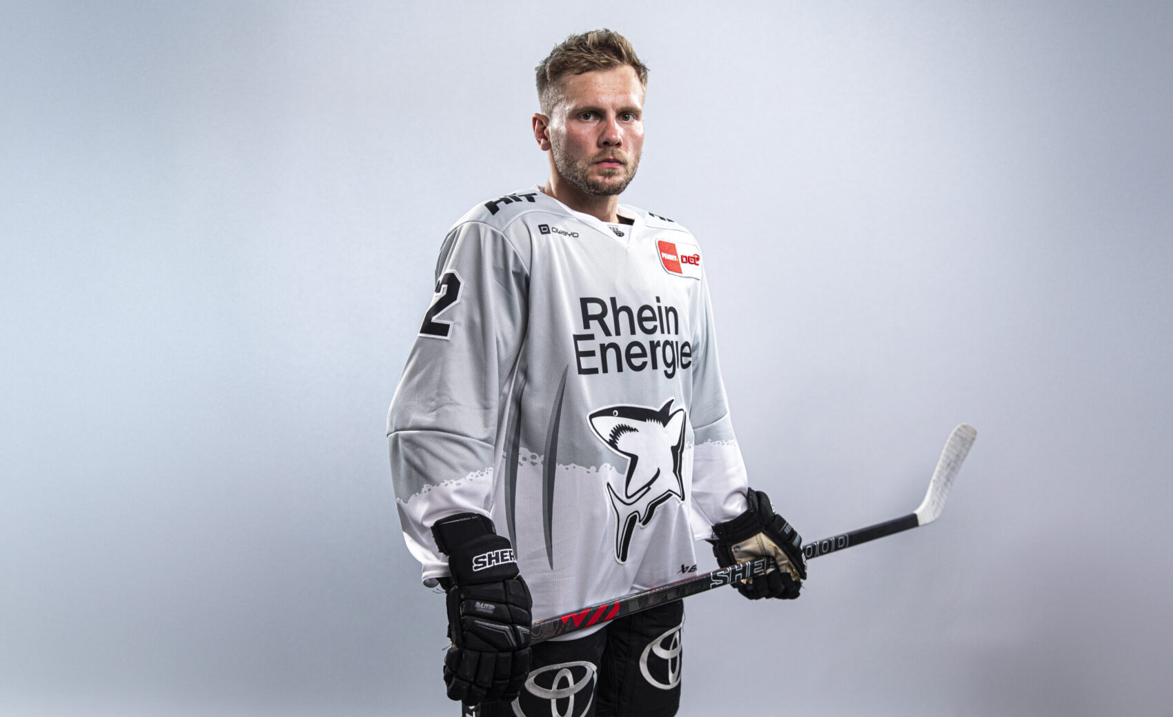 Unsere Partien auf fremden Eis bestreiten wir in der Saison 2024/2025 in einem grau-weißen Jersey, welches mit seiner Optik an die eines Hais angelehnt ist. Viele kleine Details wie das Kölner Stadtwappen im Kragen, dem natürlichen Farbverlauf von Grau zu Weiß, einer kleinen Haifischflosse sowie Kiemen auf dem Rücken runden das optisch auffällige Trikot passend ab.