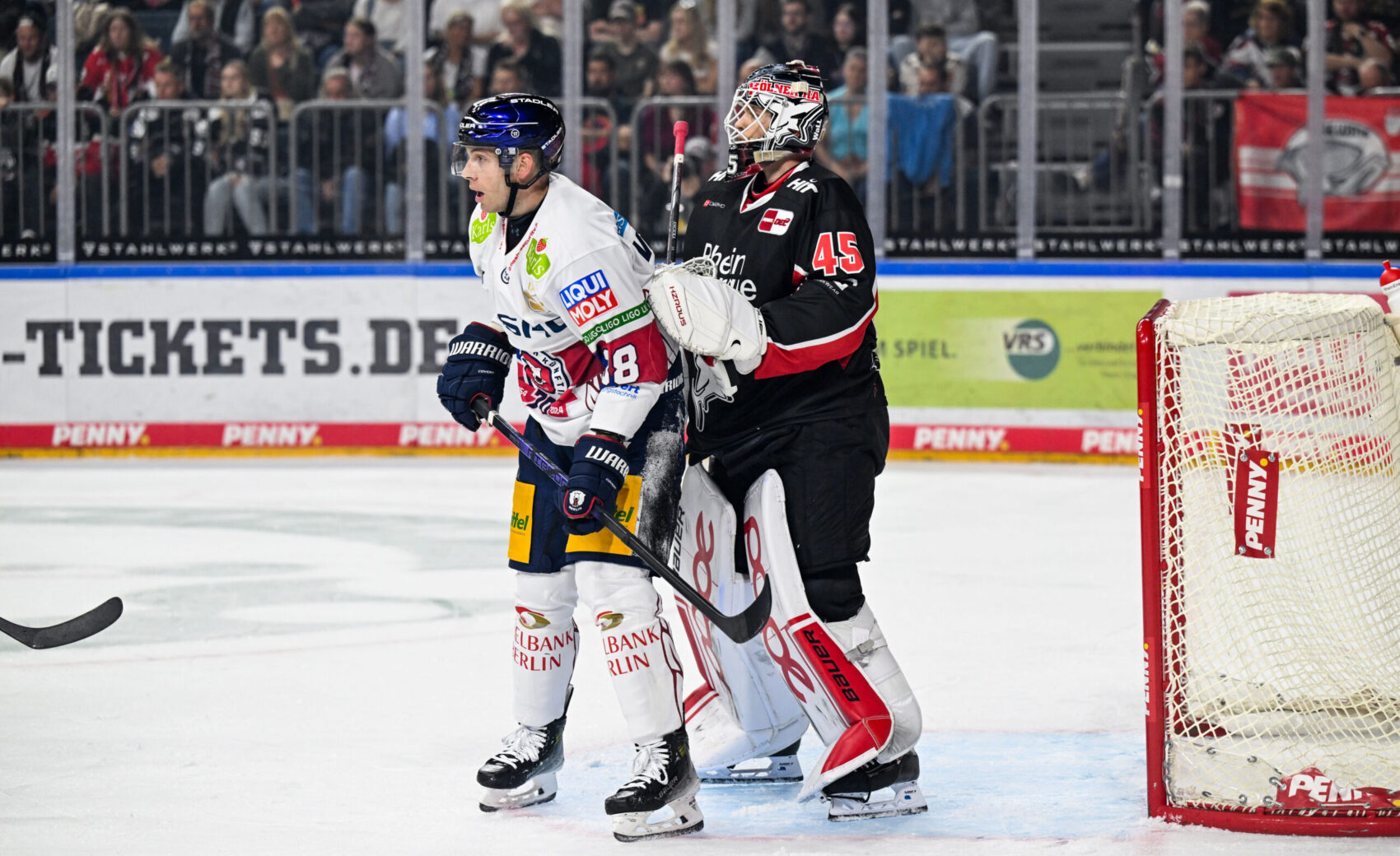 Was unser Cheftrainer Kari Jalonen, der sein Debüt als Chefcoach in der PENNY DEL feierte, später in der Pressekonferenz als kurzes Momentum beschrieb, sollte leider kurz bleiben, denn auf unseren vielumjubelten Ausgleich hatten die Berliner die richtige Antwort. Und das in Form von drei Treffern innerhalb von drei Minuten – Frederik Tiffels, Eric Hördler und wieder Fontaine stellten noch vor der zweiten Drittelpause auf 4:1 für die Gäste.