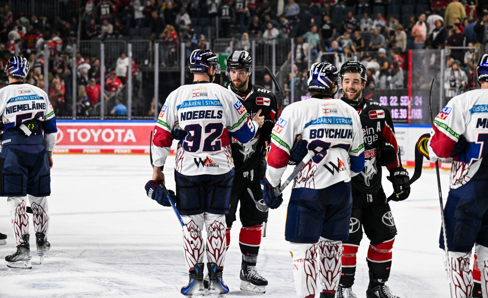 Ins zweite Drittel starteten wir deutlich zielstrebiger und konnten uns in guten Phasen immer wieder in der Berliner Zone festsetzen – einen schöner Angriff über Gregor MacLeod und Alexandre Grenier nutzte Justin Schütz zum Ausgleich (31.), der im Slot richtig stand und die Scheibe aus halblinker Position an Eisbären-Goalie Jake Hildebrand vorbei ins Tor bugsierte.