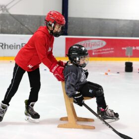 Auf dem Eis wurde getobt, gespielt und in einem spannenden und abwechslungsreichen Eishockey-Parcours die vielen Seiten des Eishockeysports erlebt. Bunte Bälle, Reifen, Stühle und natürlich Eishockeypucks animierten die jungen Kufencracks, sich auf dem Eis mit viel Spaß zu bewegen. Die Trainer, Haie-Profis und Sharky gaben Hilfestellung und erklärten, wie man sich am besten auf den Schlittschuhen hält.