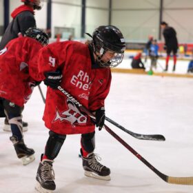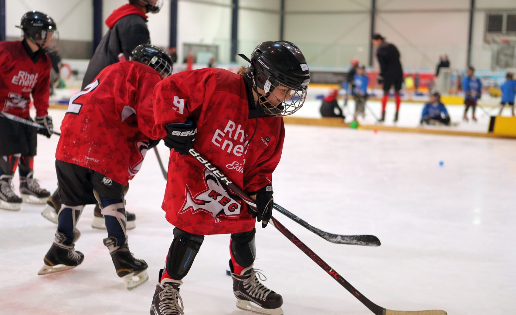 Los ging der Schnuppertag mit einer Begrüßung und der Einkleidung in die passende Eishockey-Montur. Unterstützung beim Anziehen und der Ausgabe der Leihausrüstungen gab es von ehrenamtlich tätigen Eltern und Teile der Haie-Crew. Sie sorgten dafür, dass auch abseits des Eises alles buchstäblich „glatt lief“.