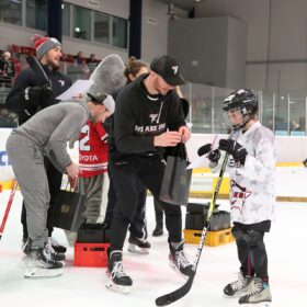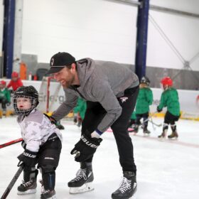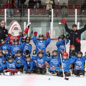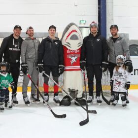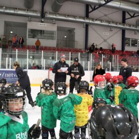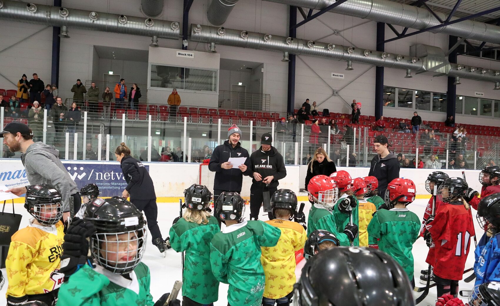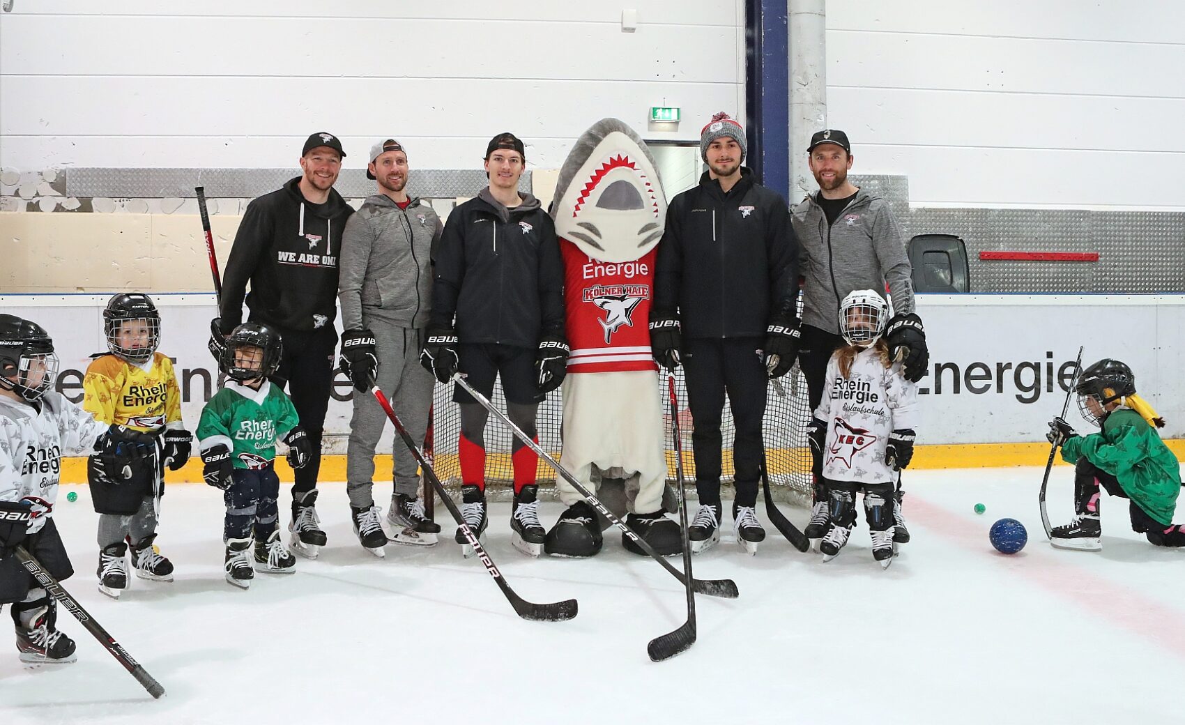 Bevor es für die Kids selbst aufs Eis ging, schauten sie zunächst den Haie-Profis beim Training zu. Anschließend betraten die Eishockey-Neulinge mit leuchtenden Augen selbst das Eis im Haie-Zentrum. Mit dabei waren dann auch die Trainerinnen und Trainer der Junghaie, Haie-Maskottchen Sharky und die aktuellen Haie-Profis Zach Sill, David McIntyre, Ryan Stanton, Max Glötzl und und Julian Chrobot.