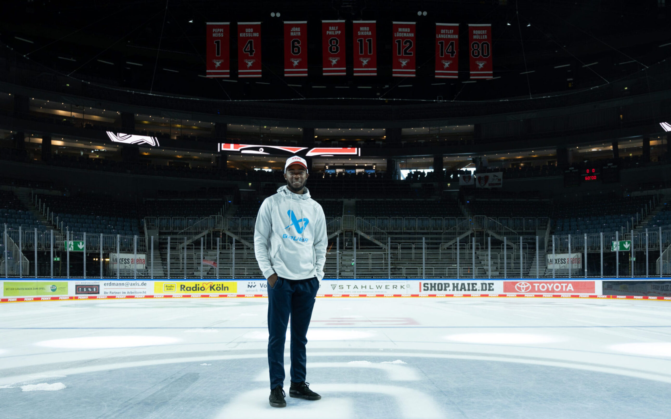 Besonderer Gast in der LANXESS arena: Über 8.000 Kilometer Luftlinie von seiner Heimat Namibia entfernt, besuchte uns Axali Jack Doeseb am vergangenen Freitag bei unserem Heimspiel gegen die Eisbären Berlin. Der 26-Jährige wohnt in Namibia – einem Land, in dem es nicht eine einzige Eishalle gibt. Doch dies hält Axali nicht davon ab, groer Eishockeyfan zu sein und unbedingt auch unseren geliebten Sport spielen zu wollen.