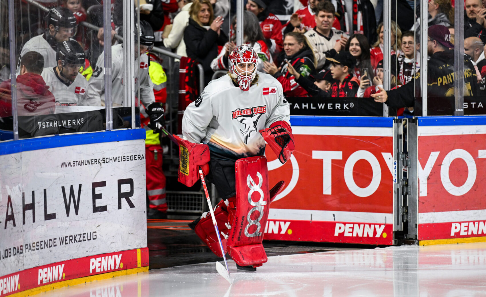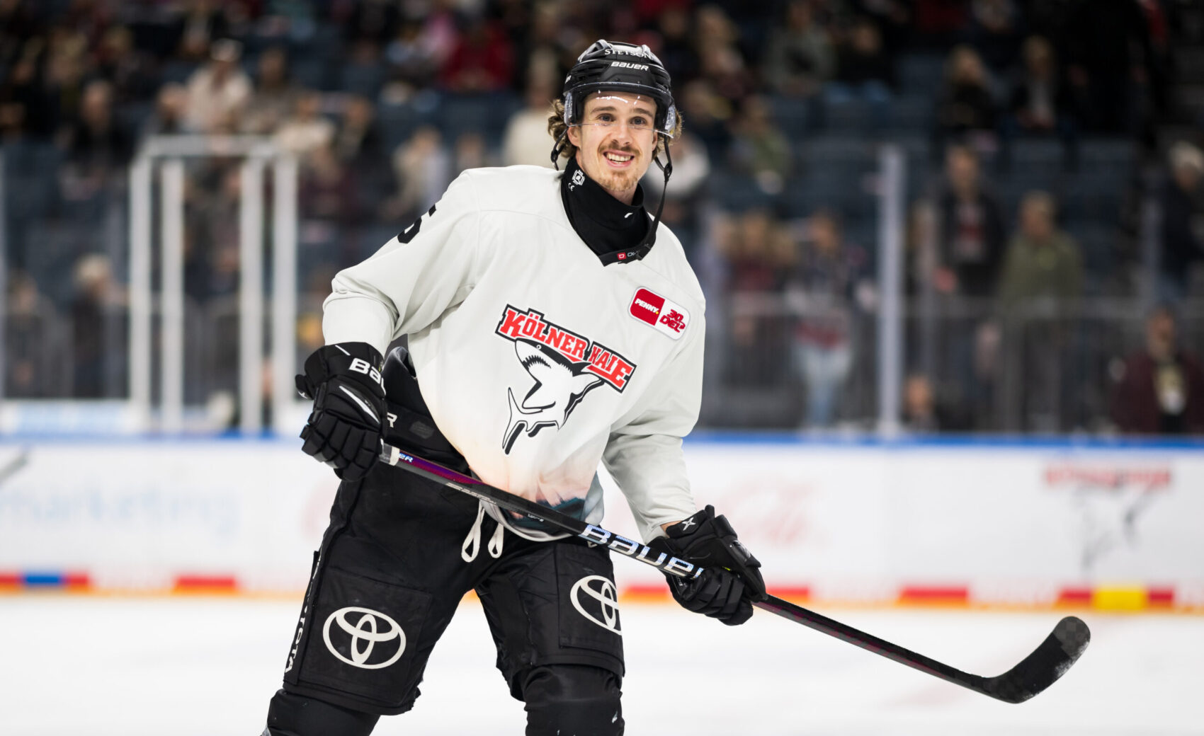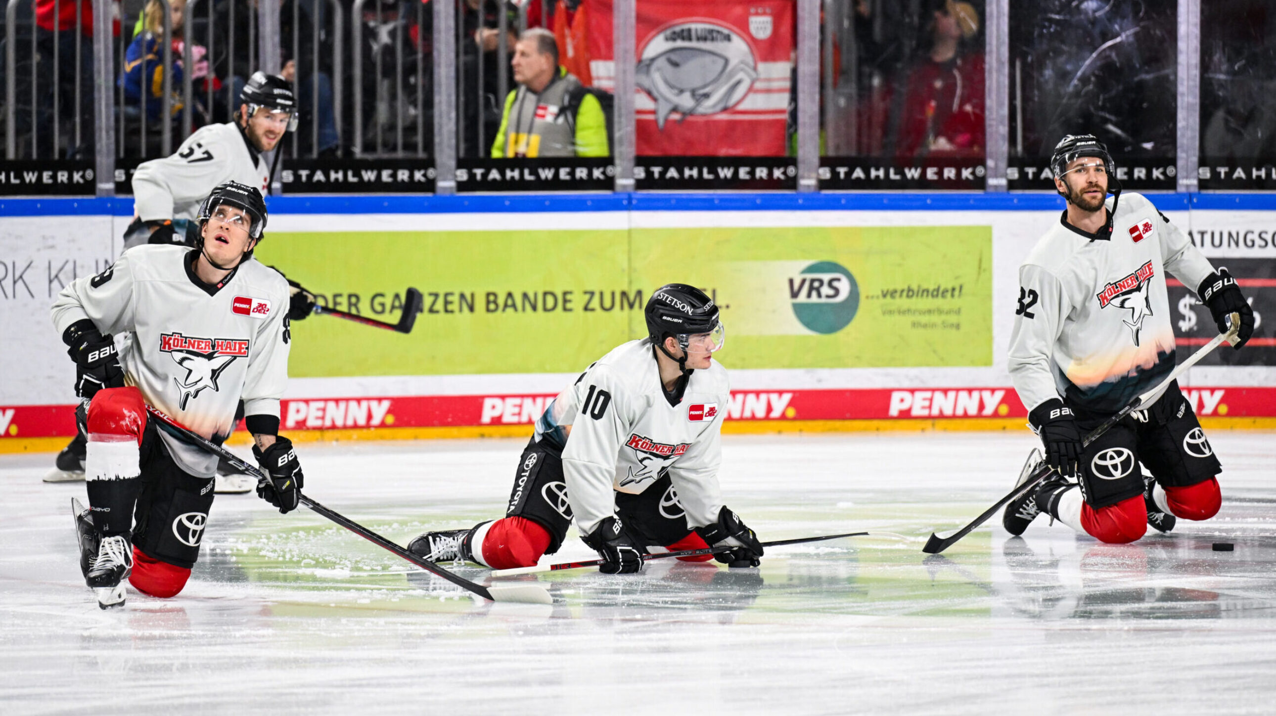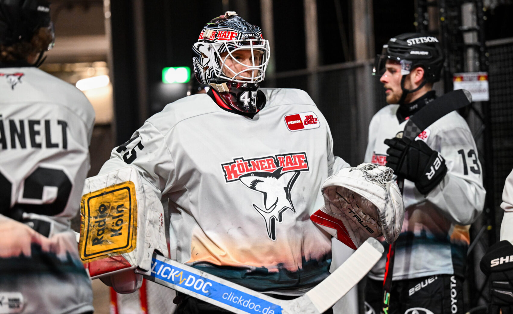 Die in mintgrün gehaltenen Trikots ziert im unteren Bereich ein Fotomotiv unserer geliebten Heimatstadt. So sind unter anderem der Dom, der Colonius-Turm und Groß St. Martin auf den neuen Warm-Up-Trikots zu sehen. Auch ein großes Haie-Logo auf der Brust darf natürlich nicht fehlen.