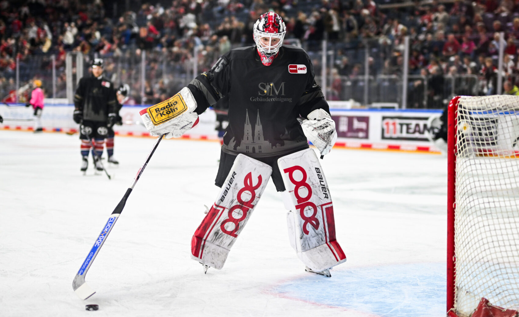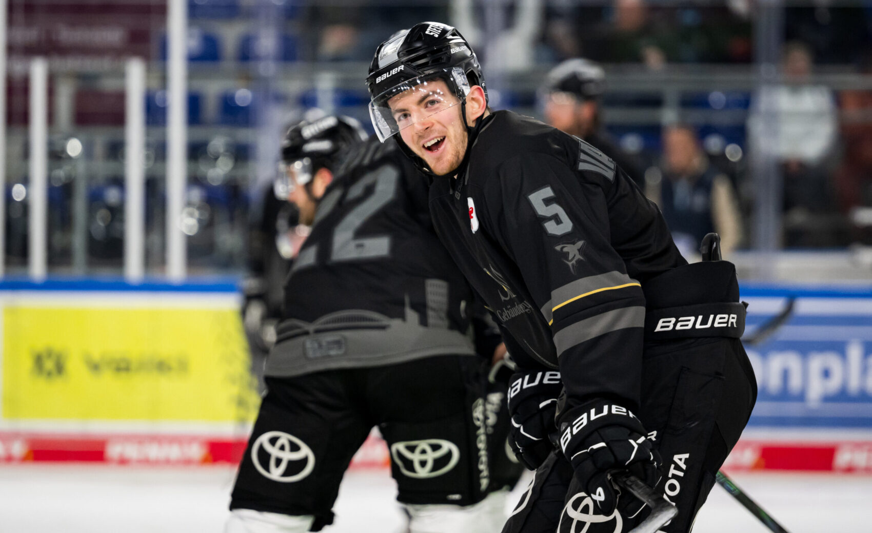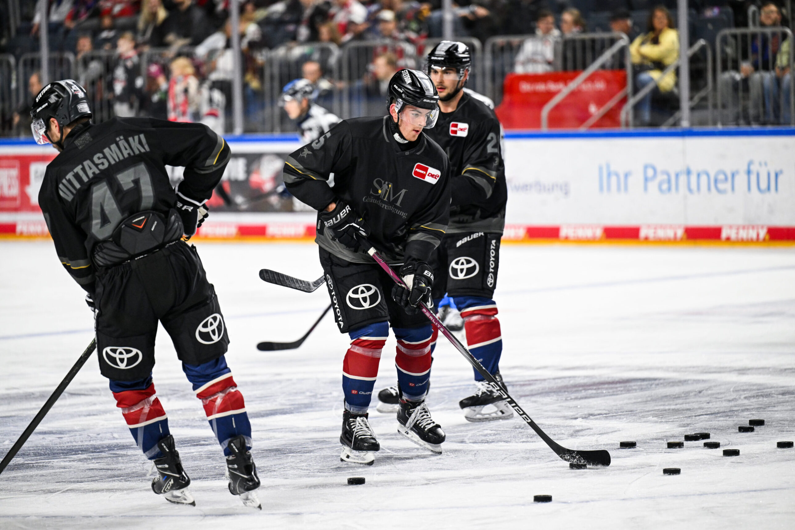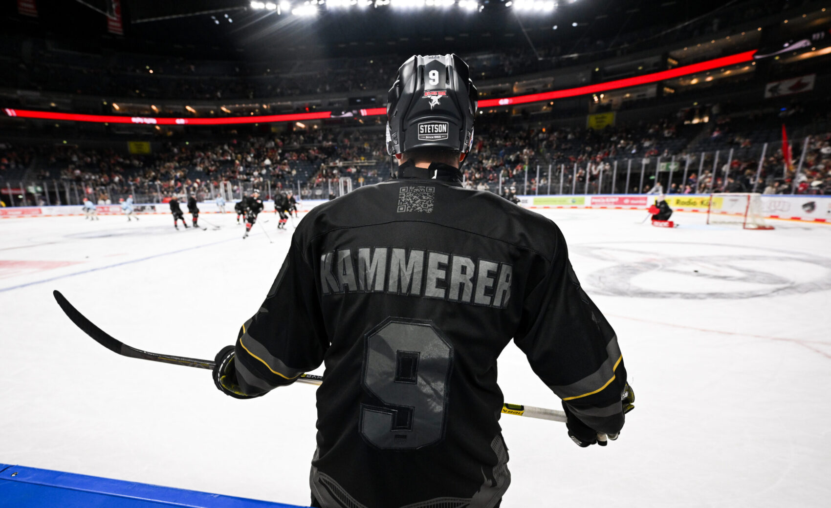 Die in schwarz und grau gehaltenen Trikots wurden von unserer Mannschaft bei allen Hauptrunden- und Playoff-Spielen vor jedem Spiel getragen. Auch wenn es beim Warm Up noch nicht so intensiv zur Sache geht, können die Trikots Spielspuren (z.B Verbrennungen durch Bandenkontakt, Puckspuren etc.) aufweisen.