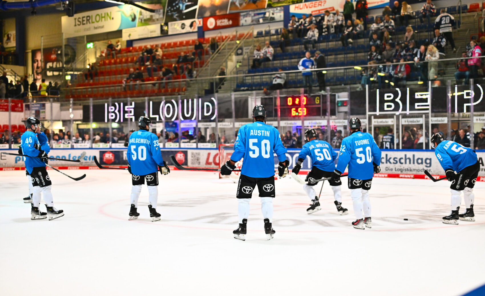 Der vergangene Spieltag der PENNY DEL (Spieltag 15) stand komplett im Zeichen der Kooperation mit der Deutschen Krebshilfe. Zum 50-jährigen Geburtstag der Organisation fanden an verschiedenen PENNY DEL-Standorten zahlreiche Aktionen statt, um ein wichtiges Zeichen im Kampf gegen den Krebs zu setzen. Darunter fiel auch ein einheitliches hellblaues Warm Up-Trikot mit der symbolischen Rückennummer 50, welches von allen Spielern vor den Partien getragen wurde. So auch von unseren Jungs vor der Partie am Seilersee. Diese Trikots sind ab sofort in der Auktion! Das Besondere: Die Erlöse werden voll gespendet!