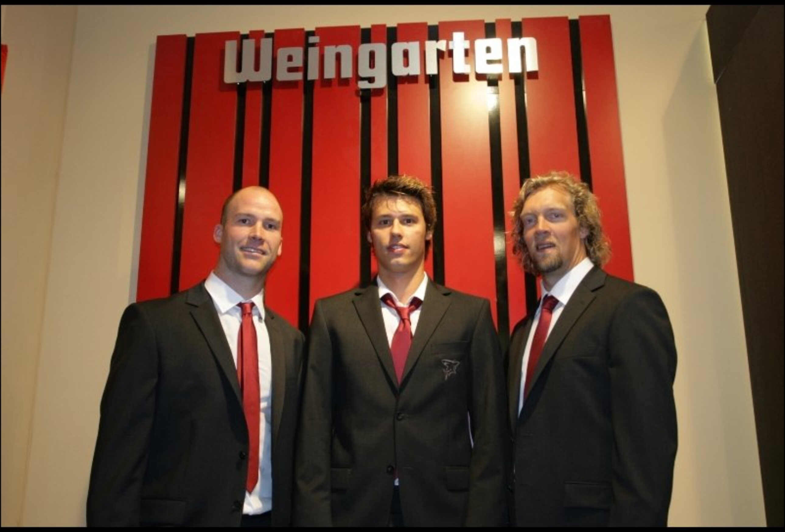 Dass die Jungs nicht nur auf dem Eis gut aussehen, dafür sorgt auch in der neuen Saison das Modehaus Weingarten. Der Haie-Partner stattet die KEC-Profimannschaft mit Clubanzügen aus. Am Donnerstag stand die Anprobe am Friesenplatz auf dem Programm. Mit dabei Charlie Stephens, Philip Riefers und Daniel Tjärnqvist (von links).