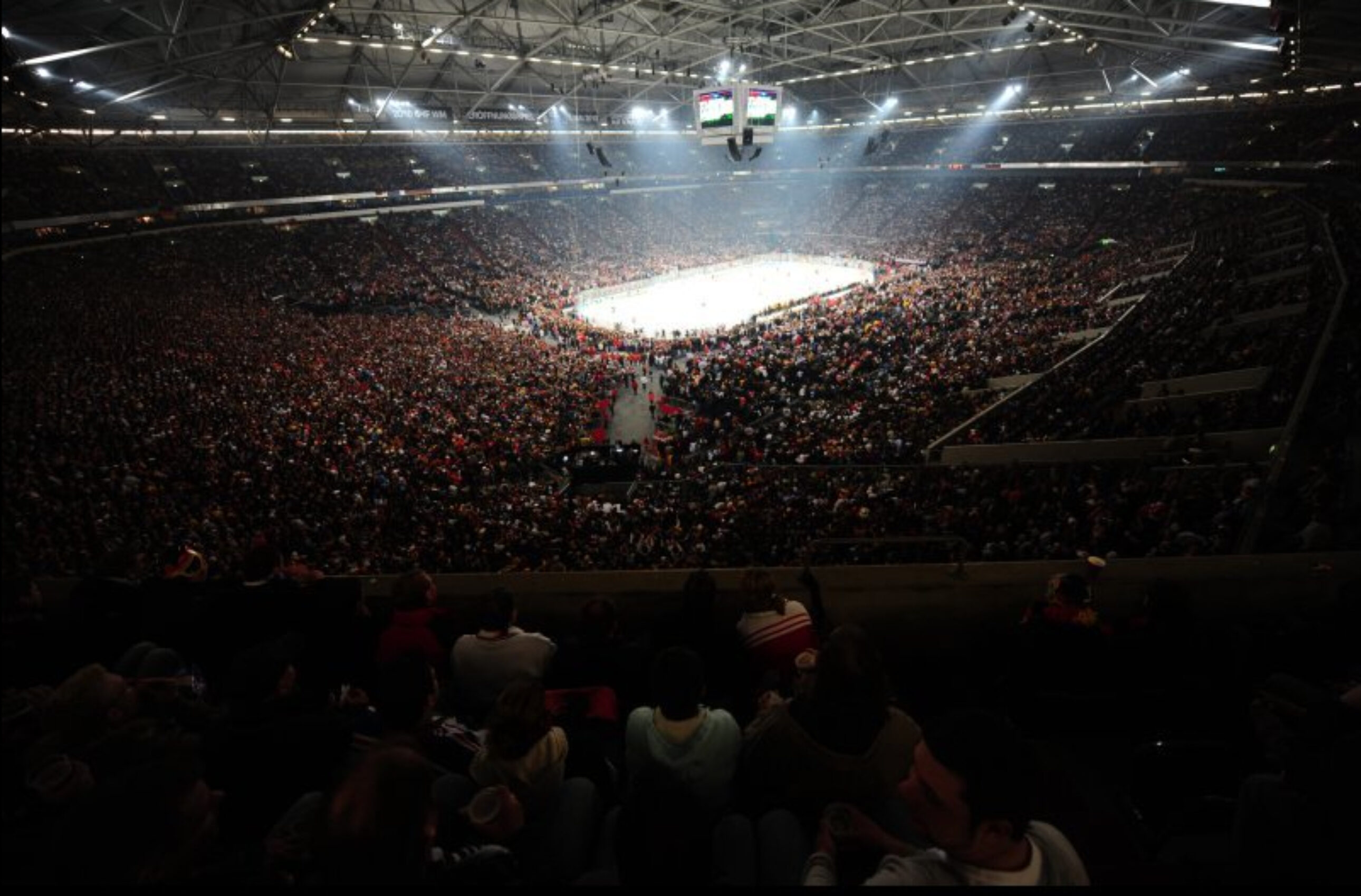 Ein Jubelorkan brandete auf, als die deutsche Mannschaft – ausgerechnet auf Schalke in neuen schwarz-gelben Trikots – aufs Eis ging. Sichtlich beeindruckt benötigten die DEB-Cracks einige Minuten, um die Nervosität zu überwinden. Nach zerfahrenem Beginn und einigen guten US-Torchancen setzte sich das Krupp-Team gegen Ende des ersten Drittels besser in Szene.