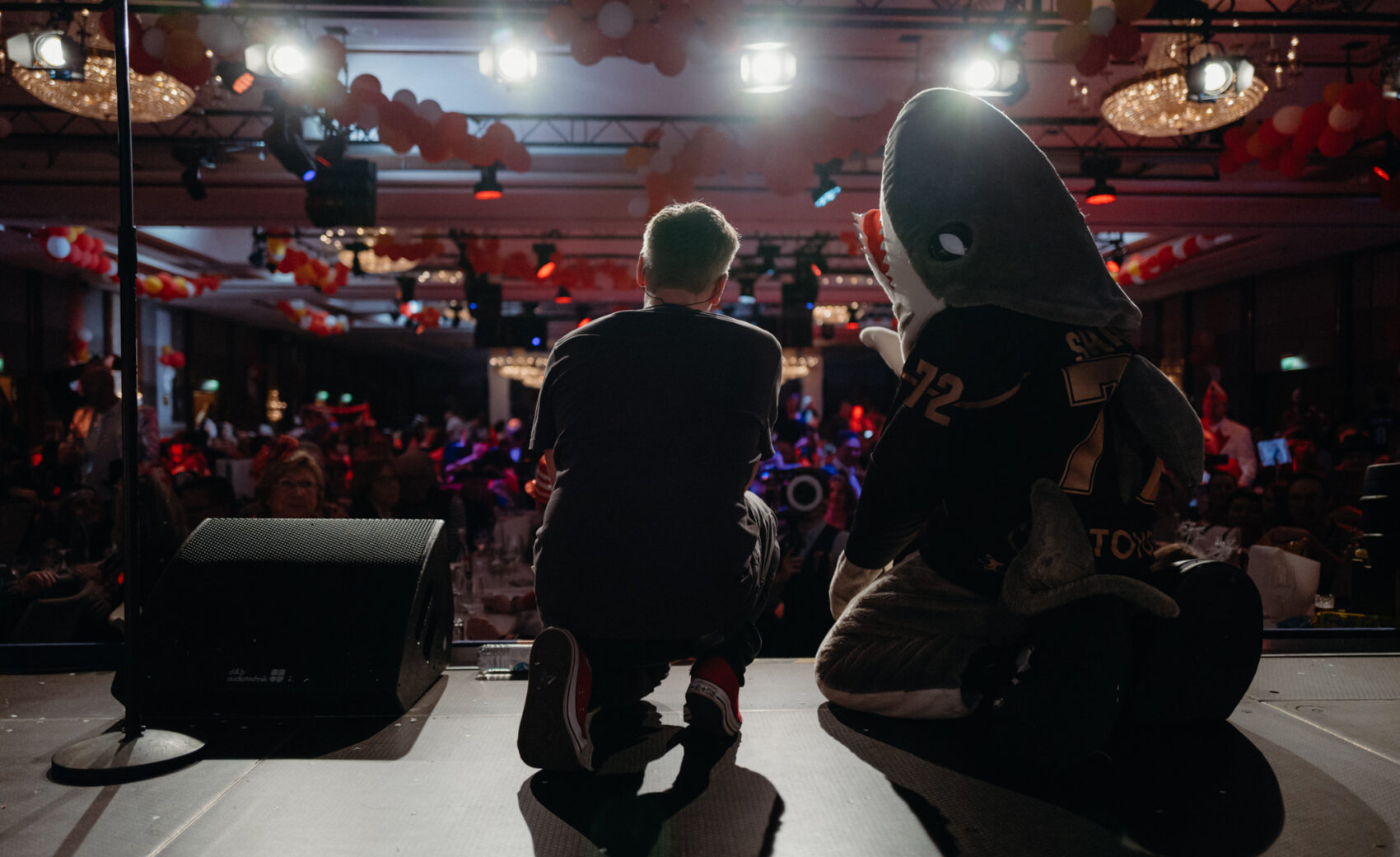 Zwischen den musikalischen Acts und den Tanzeinlagen las Sitzungspräsident Nagel immer wieder Summen vor, die spendierfreudige Haie-Fans zugunsten der Junghaie abgaben. Wie gewohnt zeigten sich die Jecken äußerst spendierfreudig, sodass sich sich die „Junghaie“ am Ende über eine Spendensumme von über 15.000 Euro freuen dürfen – eine laut Haie-Geschäftsführer Philipp Walter „gigantische Summe“, für die sich der KEC recht herzlich bedanken möchte.