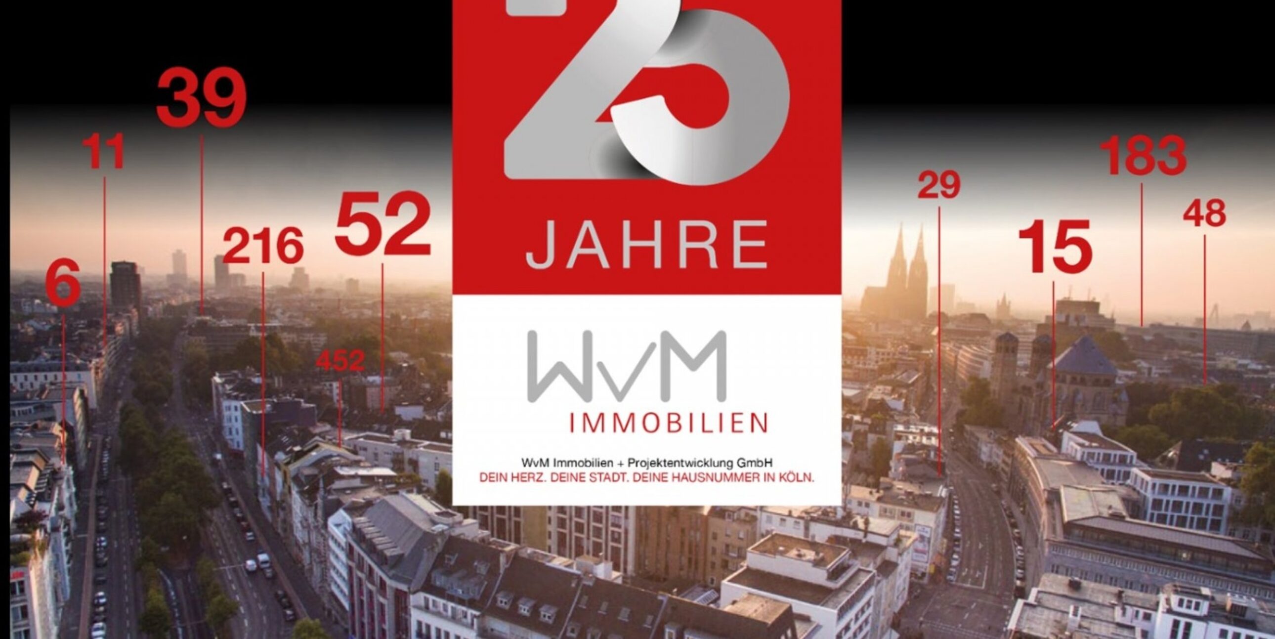 Seit 25 Jahren schafft der Kölner Bauträger Wohnraum für unterschiedliche Zielgruppen: Vom 1-Zimmer-Apartment im Szeneviertel über die Penthousewohnung mit Domblick bis zur 4-Zimmerwohnung in ruhiger Stadtrandlage ist für jeden Geschmack etwas dabei. Im Laufe der Jahre hat sich das Unternehmen zu Kölns grötem inhabergeführten Bauträger etabliert und realisierte bereits über 3.600 Wohnungen, beschäftigt über 100 Mitarbeiter und im Schrank stehen zwei Immobilienawards und eine Nominierung. Alle aktuellen Projekte gibt es unter www.wvm.de.
